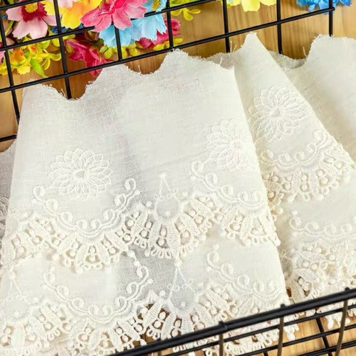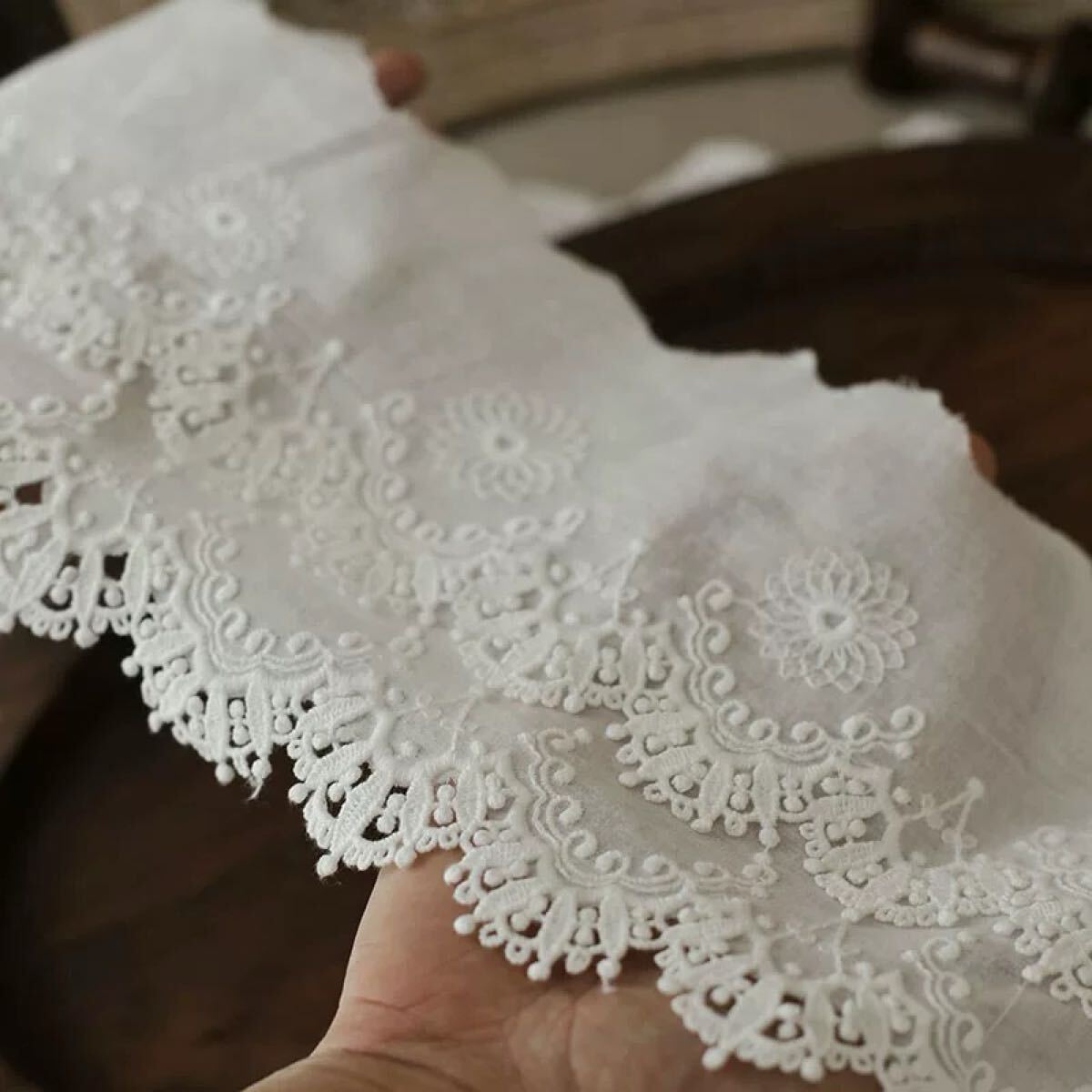 お洋服の襟ぐり、袖口、裾、お人形の洋服などのデコレーションに、幅広く使って頂けます。