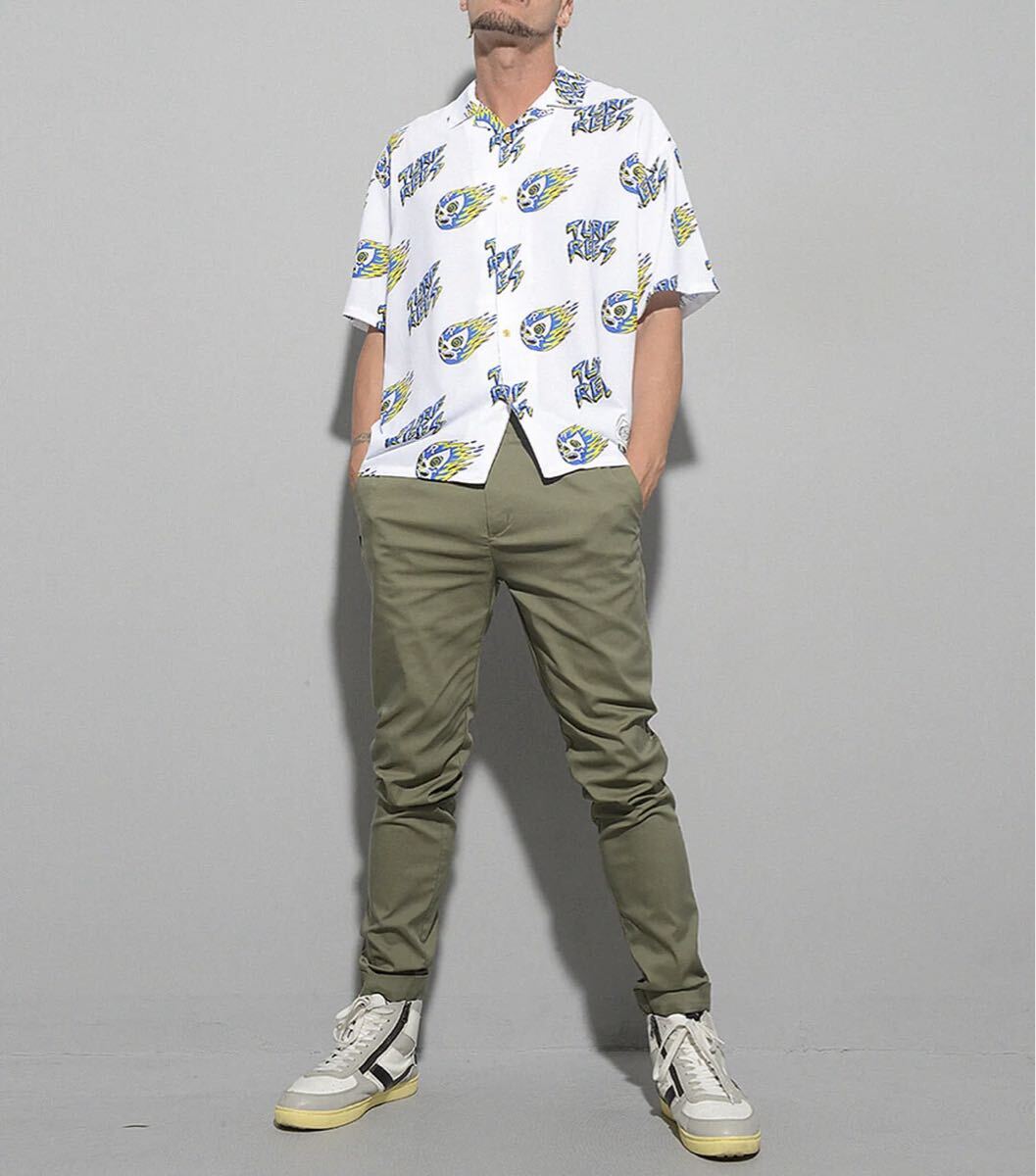 軽量で伸縮性に優れた撥水加工ドライ生地を使用した定番スリムシルエットスラックスを、アースカラーをチョイスし、少し大人なシルエットのワークパンツテイストに仕上げました。