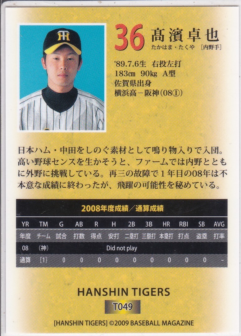 ●2009BBM/阪神【高濱 卓也】通常版キラパラレル No.T049