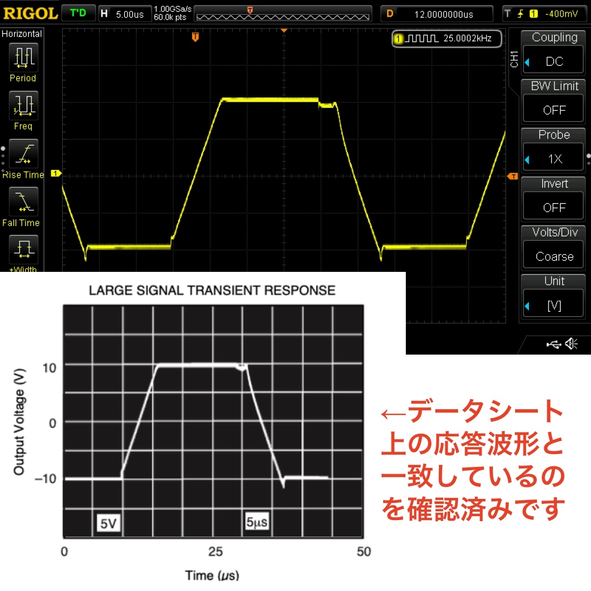 2個共にオシロスコープで大振幅応答波形がデータシートと一致することを確認済みの正真正銘本物です。