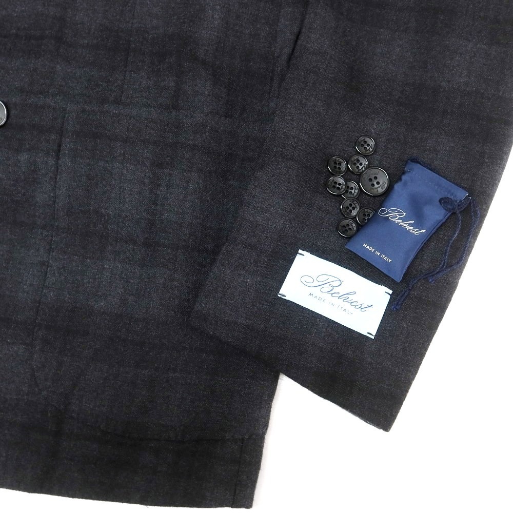 ・秋冬向け ・チェック ストレッチウール ・Belvest ・イタリア製 ・透け感 なし ・ダブル6つボタン ・袖未処理 ・箱ポケット ・パッチポケット ・背抜き ・サイドベンツ ・ノープリーツ ・クリースステッチ ・ジッパーフライ ・裾未処理 ・ウエスト一部ゴム入り ・参考本体価格295,000円+税
