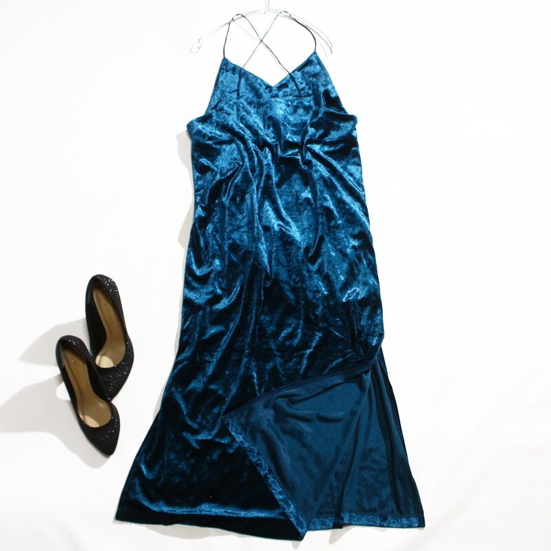 クラッシュ加工を施したベロア素材です。カジュアルなのに大人っぽいデザインが可愛いワンピースです。 無駄な装飾のないシンプルなデザイン、大人っぽく着用可能なストレートシルエット、両サイドにスリットデザイン、ボディラインを拾い過ぎないややゆとりのあるサイズ感です。