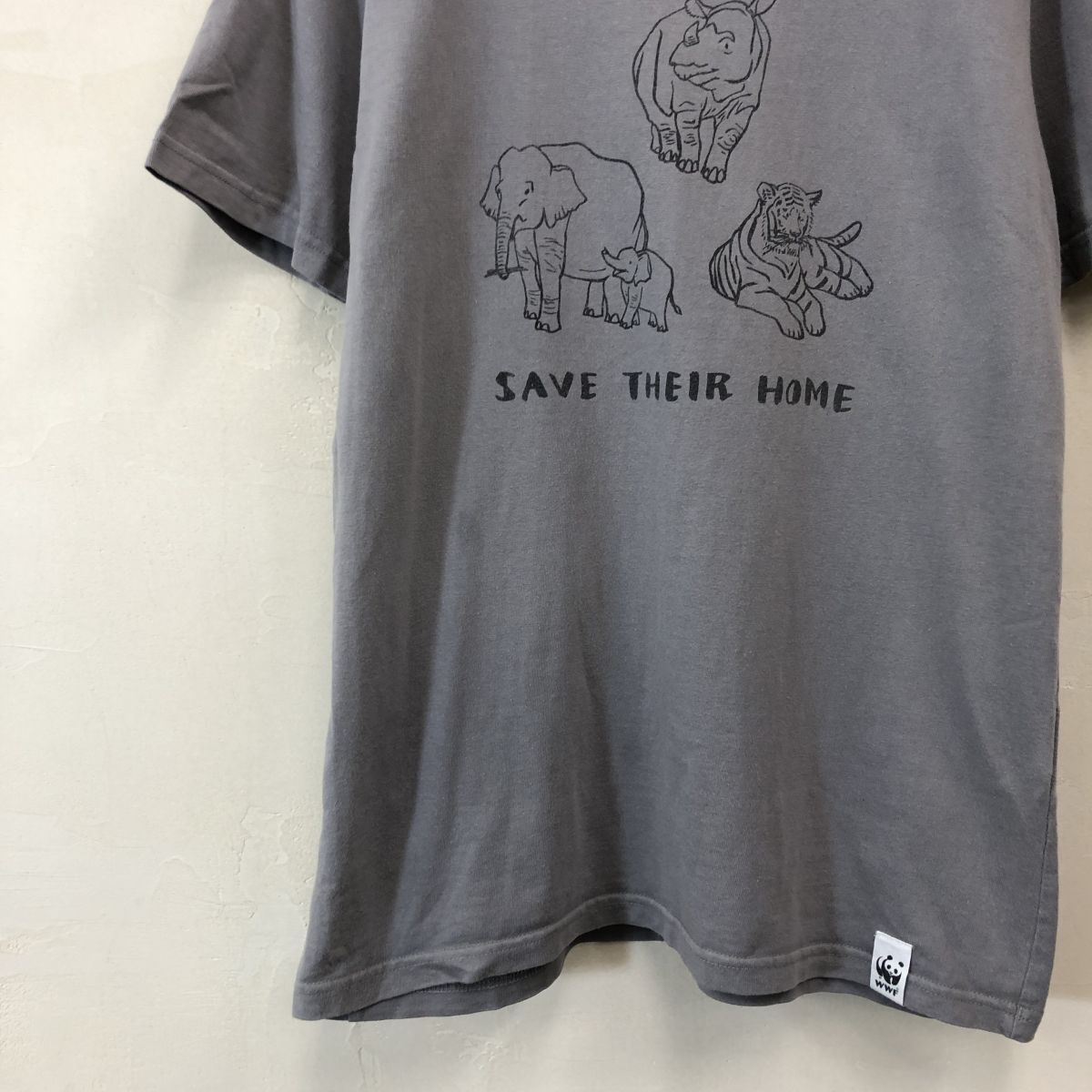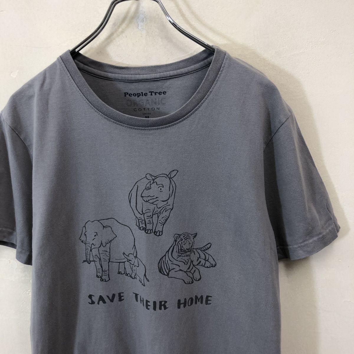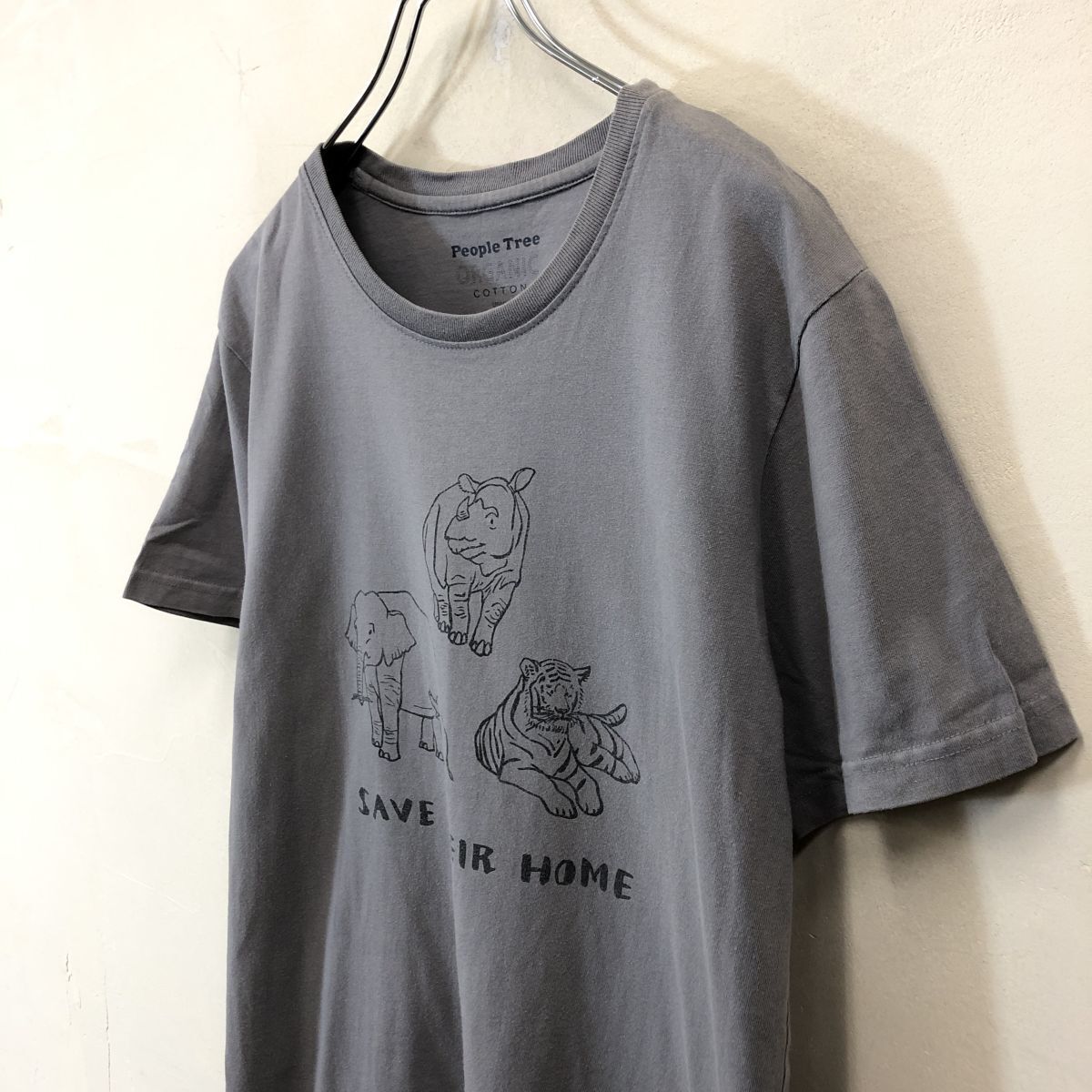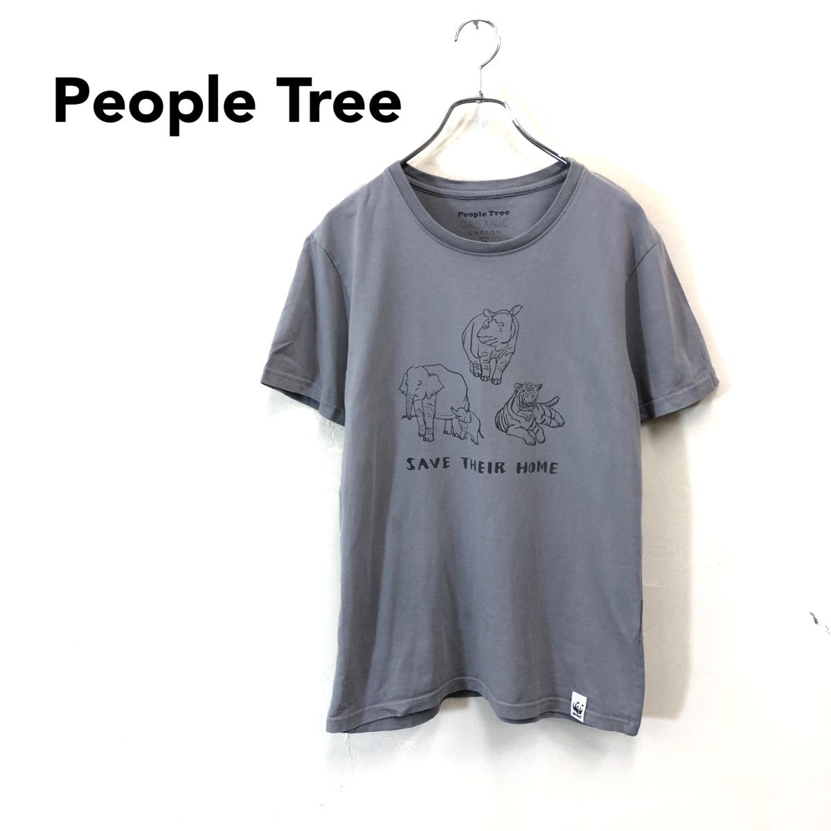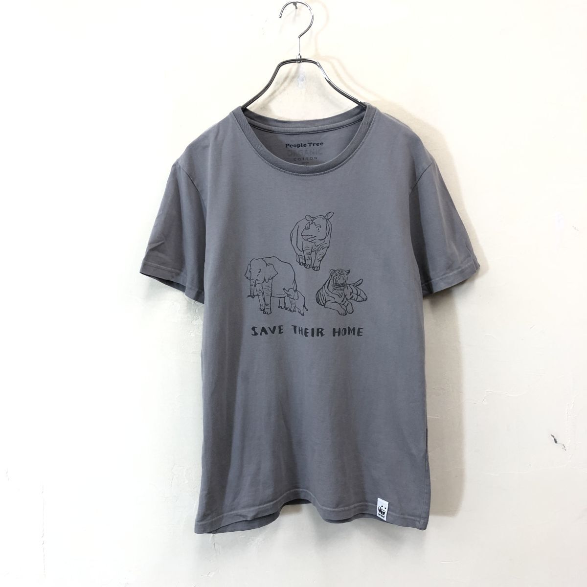 2K1895-Y◆People Tree ピープルツリー 半袖Tシャツ アニマルプリント クルーネック WWF ユニセックス カジュアル 春夏 ◆sizeM グレー 綿