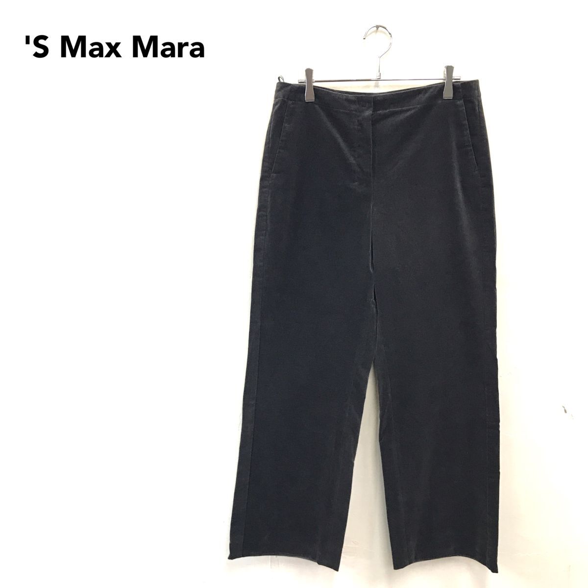 2K1695-Q◆良品◆'S Max Mara エス マックスマーラ ストレートパンツ コーデュロイ ボトムス 無地◆size 42 黒 ブラック コットン