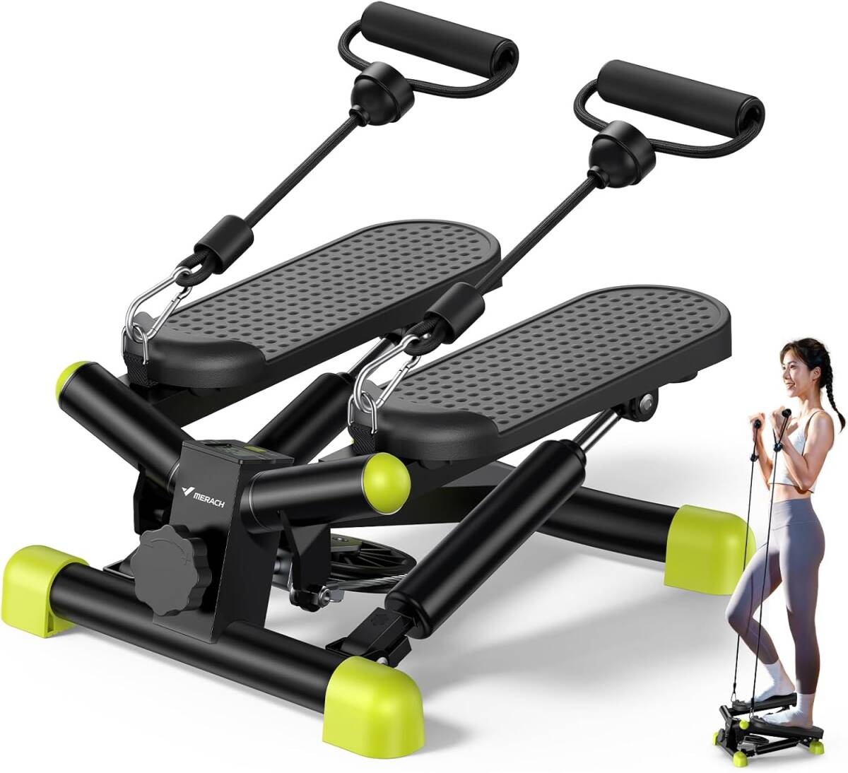 『美品』MERACH/メリック ステッパーステッパー MR-2354 エクササイズバンド/モニター付き 全身トレーニング 足踏み 静音設計 コンパクト | ||