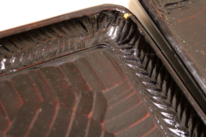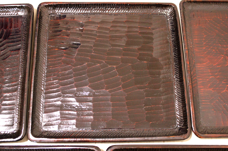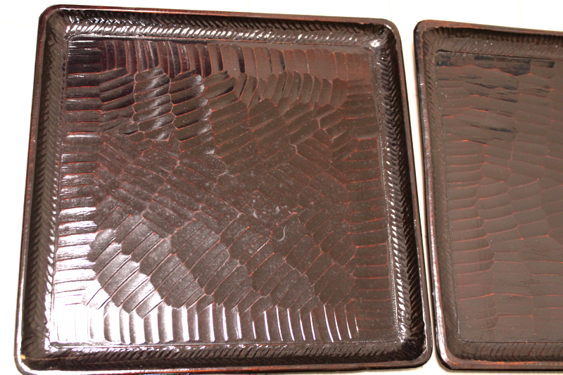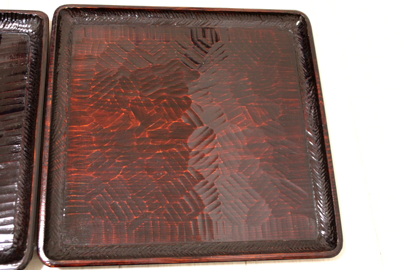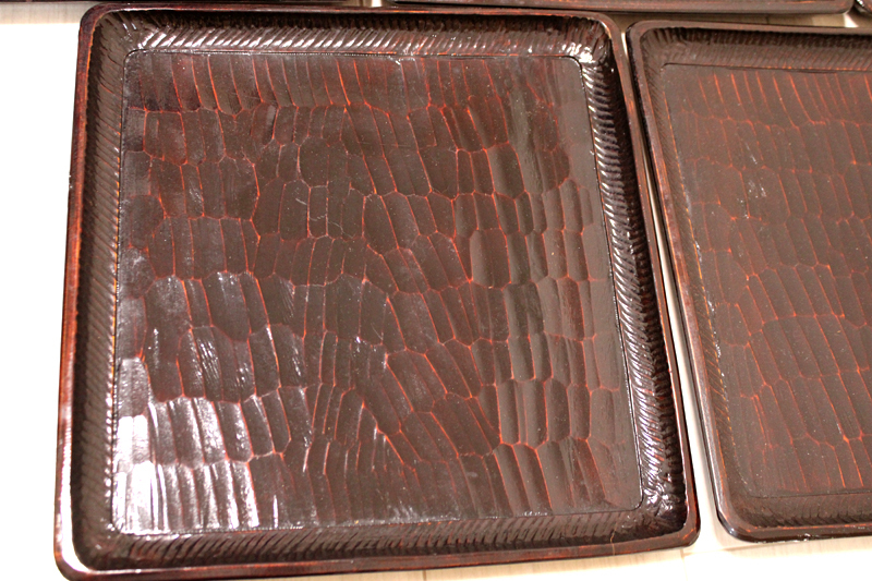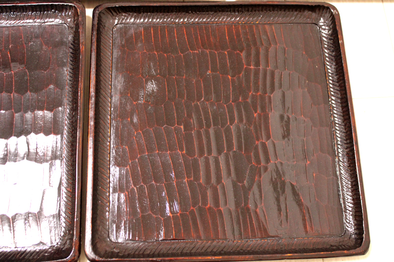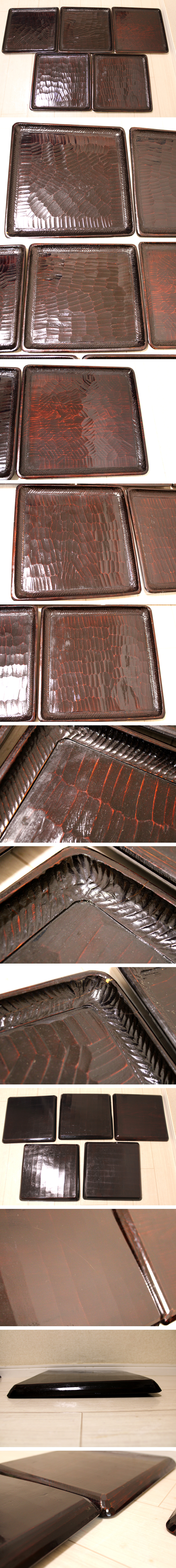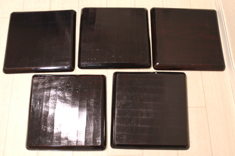 「讃岐 後藤塗 四方盆5枚セット」年代物 四角盆 お盆 木製 くり抜き