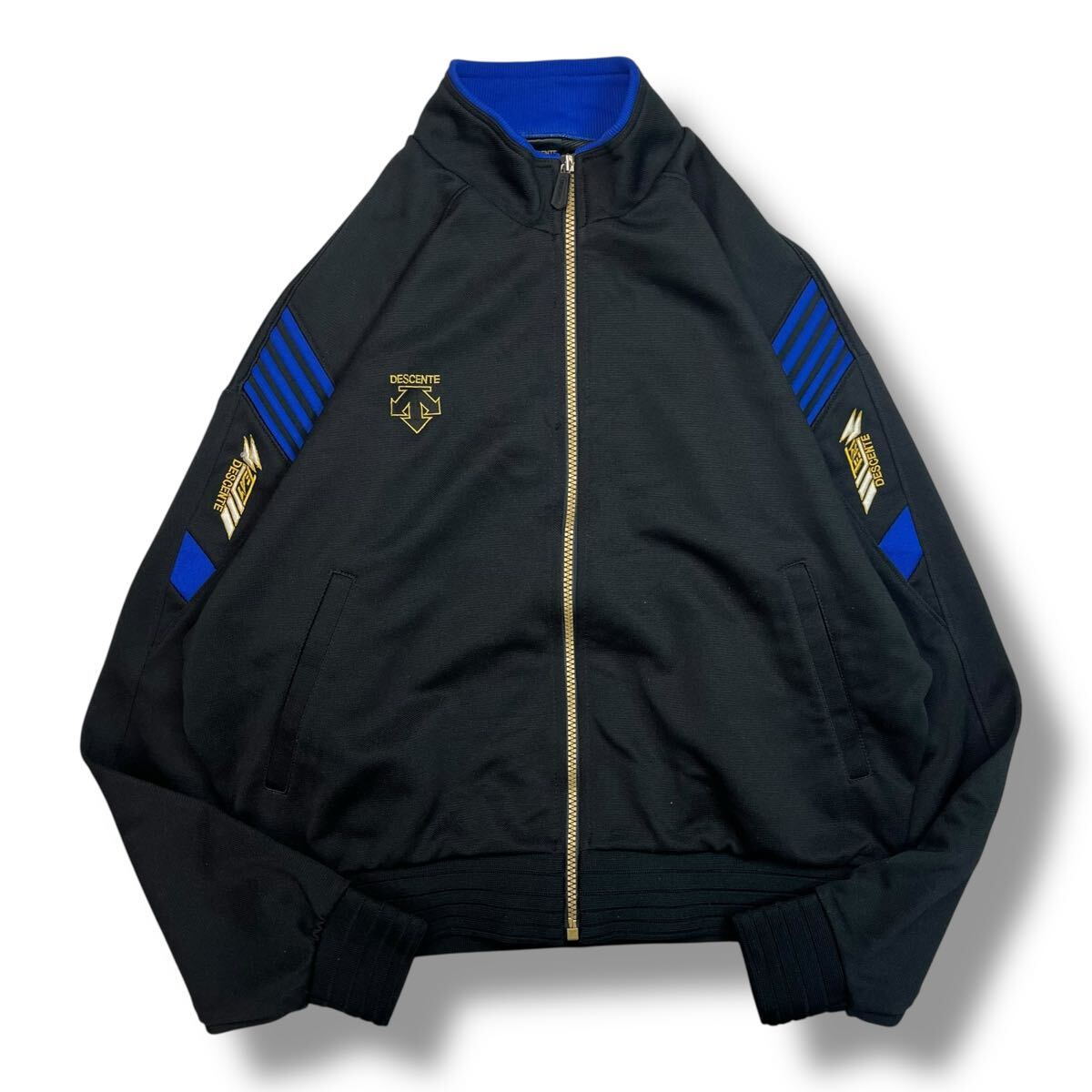 (TK0915)【90s】 DESCENTE デサント ジップアップ ジャージ トラックジャケット ブラック ビンテージ レトロ スポーツ ウェア L