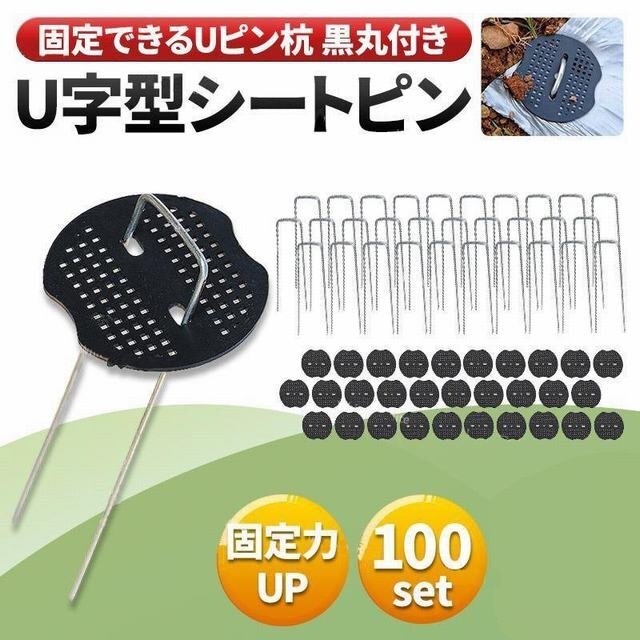 Uピン杭 黒丸付 固定ピン 人工芝 マルチシート 防草シート 100本 シート