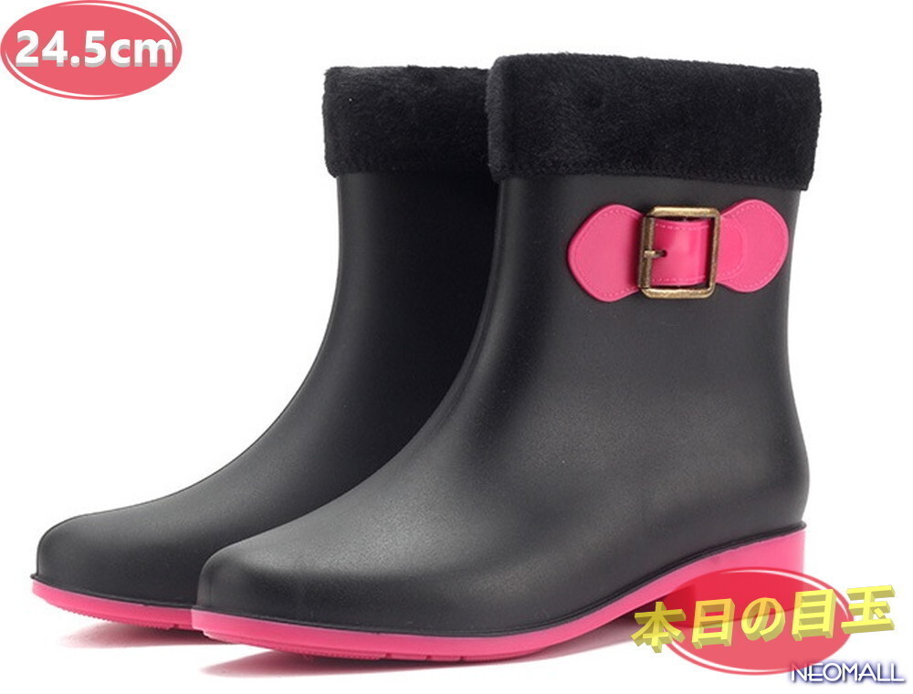 1スタ☆ レインブーツ【499】 24.5cm ブラック ジョッキーブーツ防水 レインシューズ レディース 長靴 レインブーツ