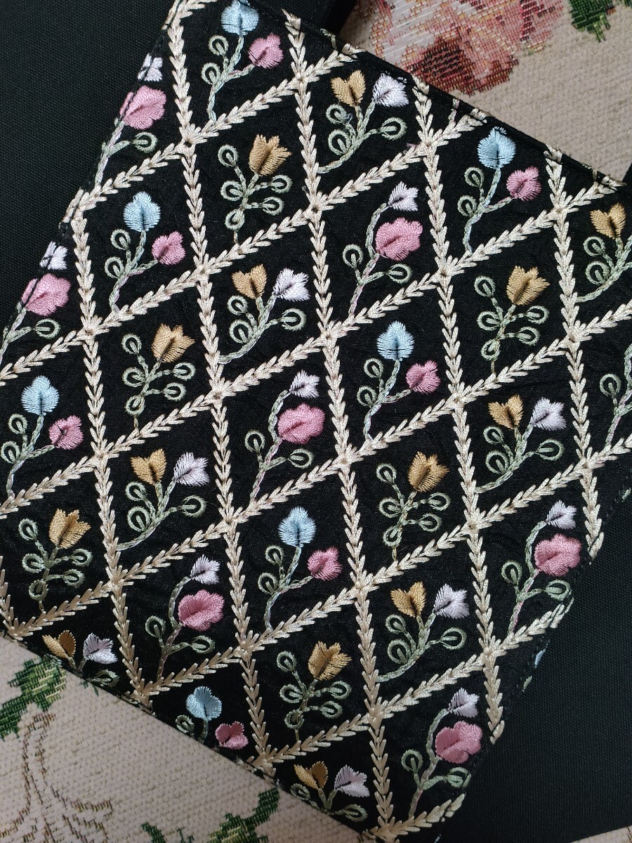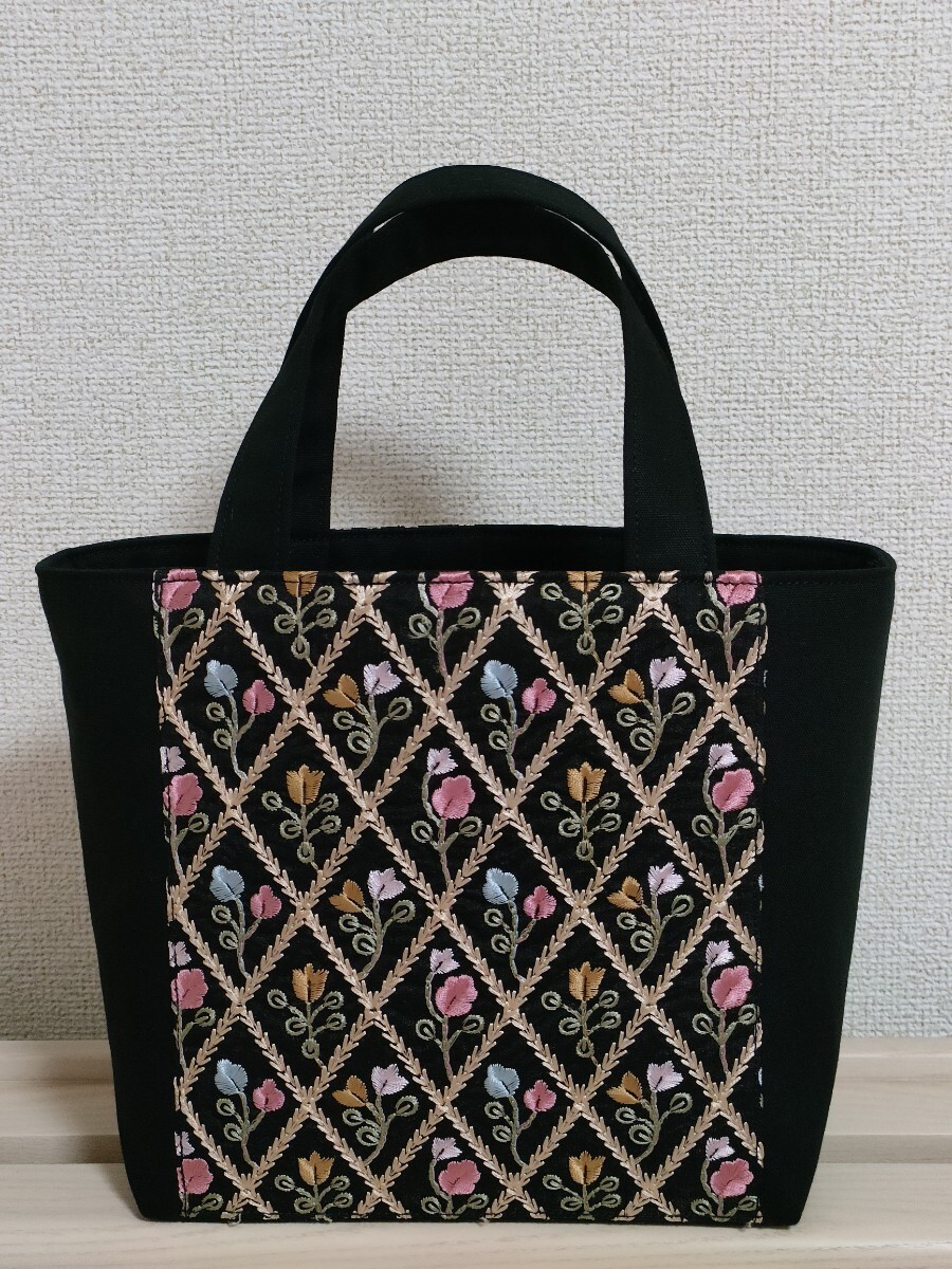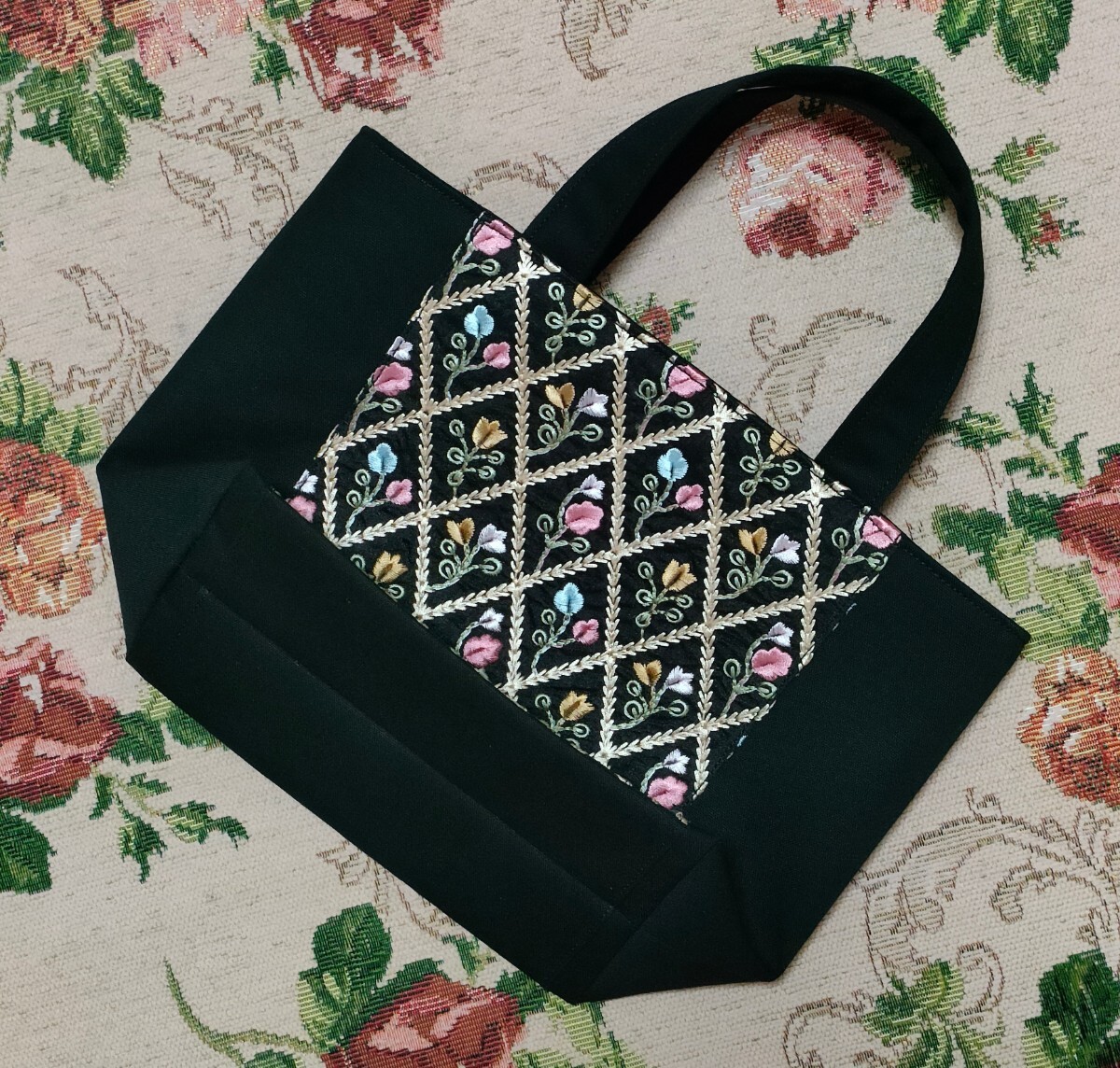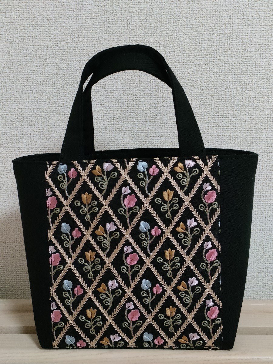 お洒落なチューリップ柄の高級インド刺繍ミニトートバッグはいかがでしょうか♪