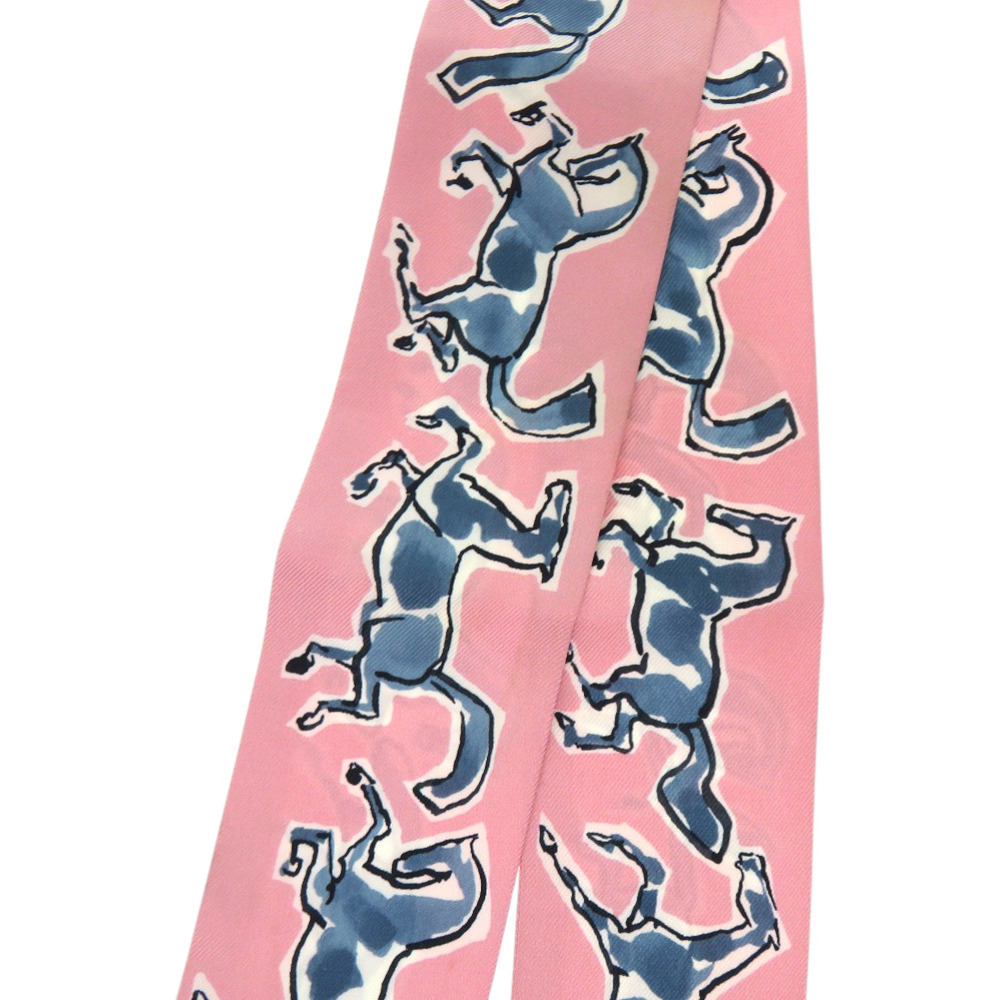美品 エルメス ツイリー chevaux en liberte 自由の馬 シルク ピンク スカーフ 1292 HERMES
