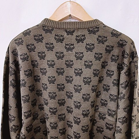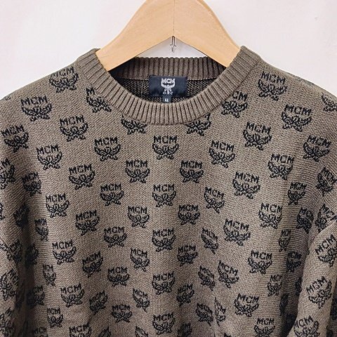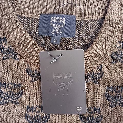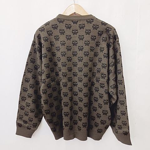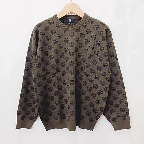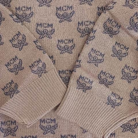 未使用品 エムシーエム MCM ニット セーター 長袖 丸首 ジャガード 総柄 茶 黒 ブラウン ブラック LL ☆AA★ メンズ