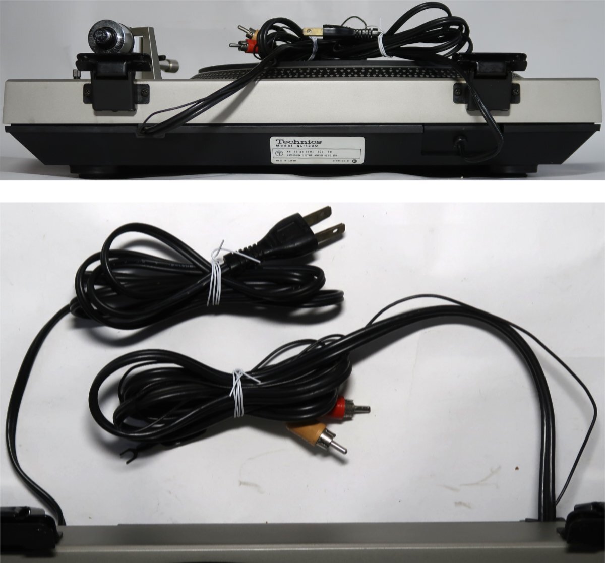 箱に入った状態で手に入れております。元箱は汚れや傷あります。性能はネット上でお調べください。出品は画像の物のみです。針やカートリッジは付属しておりません。他に必要なものがあればご自分でご用意ください。使用品ですので多少の擦れや汚れはあります。天板は多少の細かいこすれはあります。私が持っている針、レコードなど機器を用意してテストしました。オーディオケーブルに問題があります。付け根付近に脱線があります。ケーブルの角度を変えたり、押し込んだりしないと通電しませんでした。なんとか角度を調整して通電した状態でテストしました。レコード(30cm)は普通に聞けました。各部も動作しております。その他のボタンの機能はしております。手動でトーンアームを操作は問題なくできます。ターンテーブルも問題なく回転します。トーンアームのオートスタート及びストップがきちんと動作していないようです。スタートボタンを押すとトーンアームは動き出して、なぜか最後まで行ってしまいます。戻ってくる時は下がったまま戻ってきます。ストップを押して手動で戻した後にもう一度押すと今度はレコードの2/3くらい行ったところでトーンアームが下りて演奏が始まります。最後まで聞き終わると自動的にロックまで戻ります。メモリーピートつまみは電源オンの代わりのようなボタンですが正確な動作確認はとれておりません。操作時は0と1をテストしたのみです。33回転のみのテストで回転速度調整もできました。45回転はレコードがなかったのでテストしてないです。アンティスケーティングつまみも使用方法がわからないのでテストしません。回転時は電源オンのイルミネーションは点灯してます。分かることは以上です。お取引後のサポートはしておりません。お取引後はいかなる理由がありましても返品はできませんし、クレームはお受けできません。