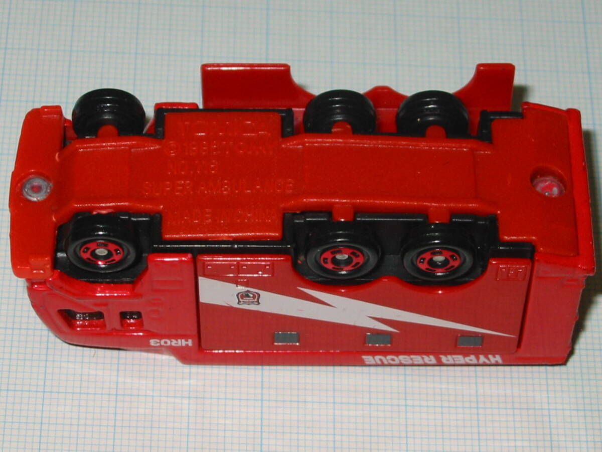 絶版品 トミカ 116 ハイパーレスキュー HR03 機動支援車★スーパーアンビュランス いすゞ ギガ ISUZU GIGA SUPER AMBULANCE 傷病者室左右拡幅 中国製 ジャンク品 です!!送るのは、本体のみの写真のものです。外箱もありません。子供が遊んでいたもので、子供が赤マジックで塗装したものです。本体のシール痕、色あせ、色むら、キズ、欠損、加筆、修正、タッチペン等、ノークレームでお願いいたします!!写真で判断してください。プチプチ包装もします。裏面の刻印は、TOMICA (C)1996 TOMY NO.116 SUPER AMBULANCE MADE IN CHINA
