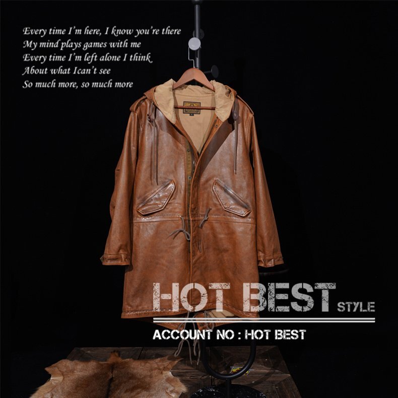 カウハイド USAF TYPE M51 ヴィンテージ加工 メンズ 革ジャン レザーコート フードパーカー タンニンなめし 牛革 Y1292/L