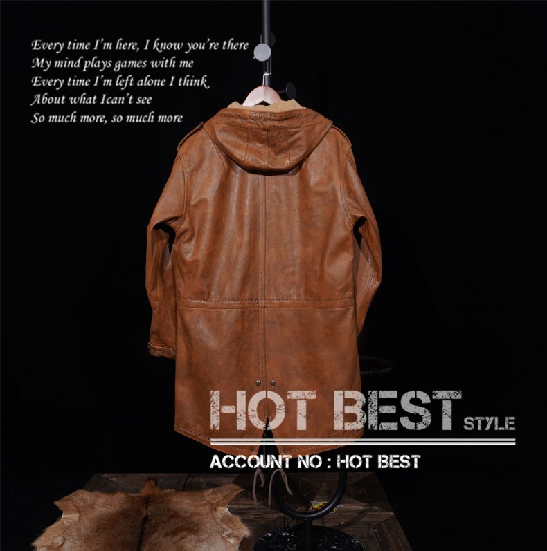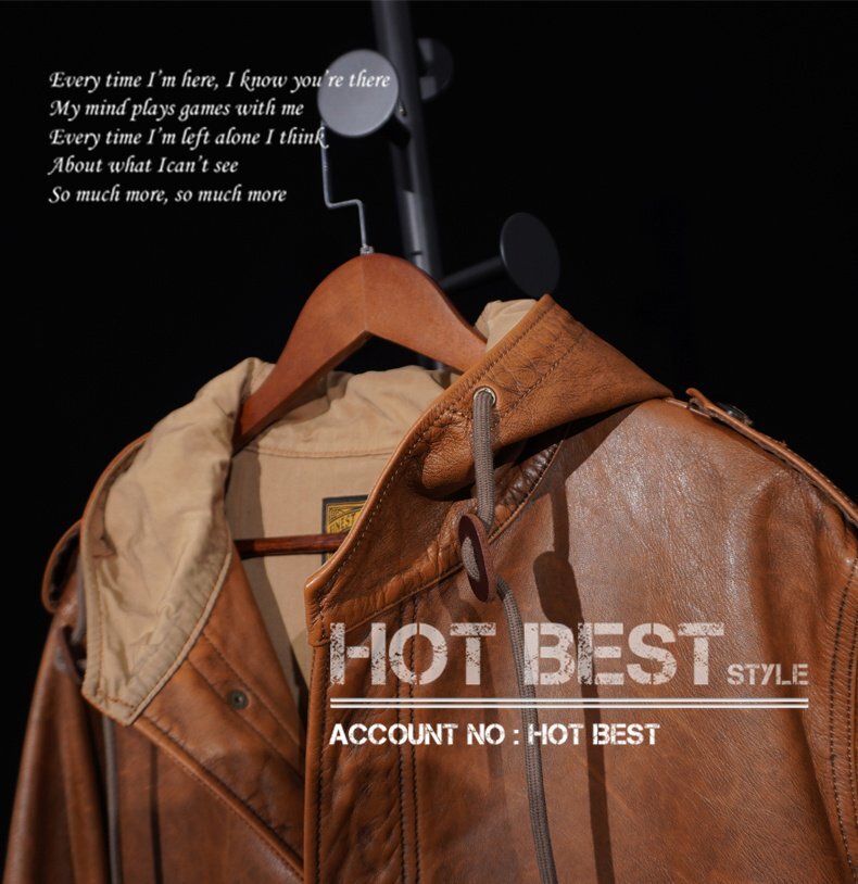 通常のレザーコートにフードが付いているデザインは珍しく、ファッション性を高めます。