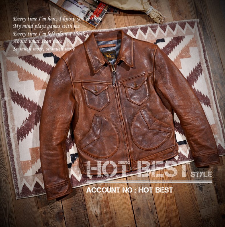 最高峰 1.9mm カウハイド 復刻40's アビエイタースタイル レザージャケット ウォッシュ加工 ヴィンテージ 牛革 Y1305/2XL