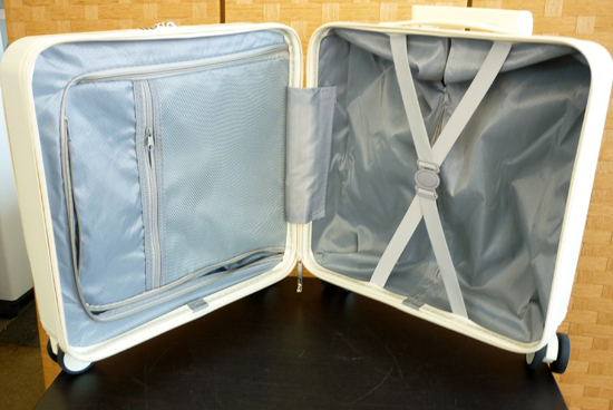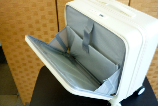 キャリーケース スーツケース 幅41cm 奥行22cm 高さ47cm 機内持ち込みサイズ カップホルダー USBポート ホワイト 前開き