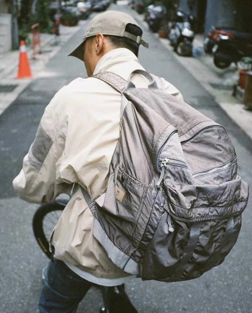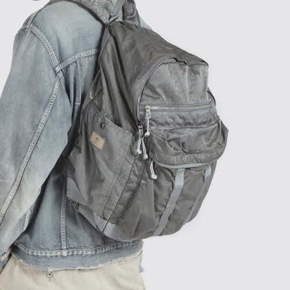 GREY WASHED BACKPACK WITH BEIGE LABEL