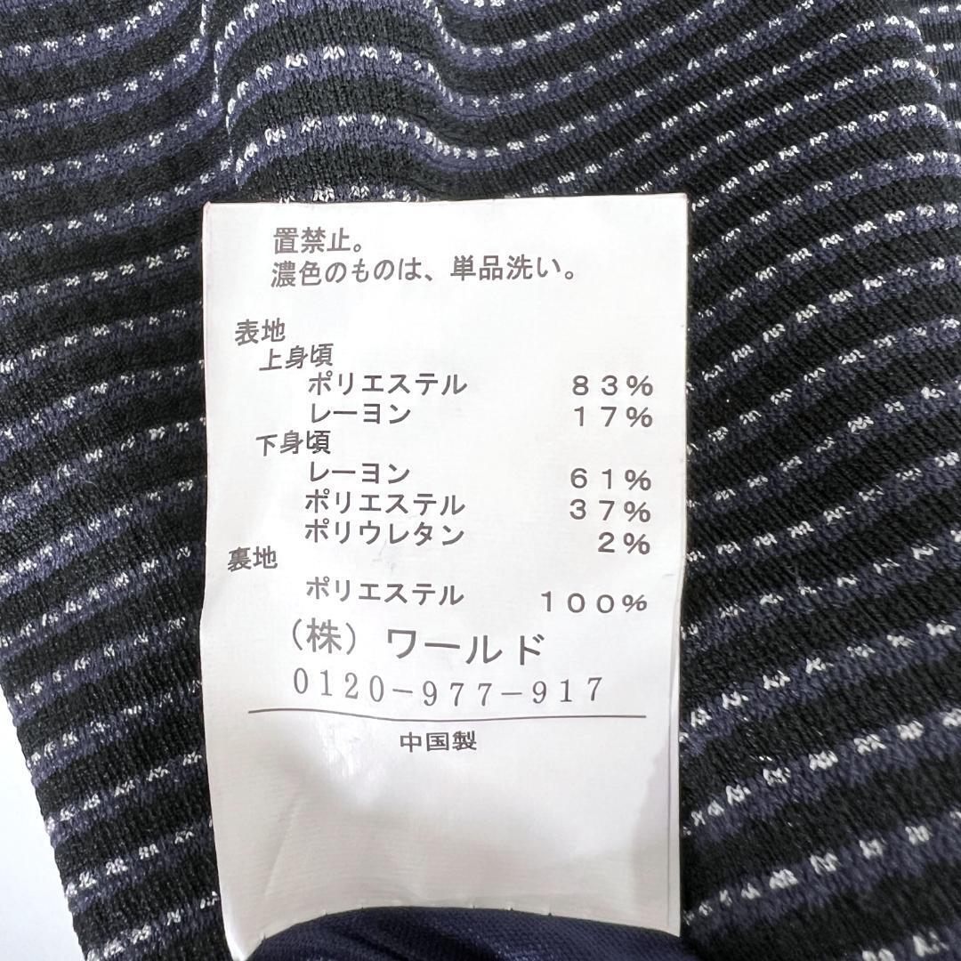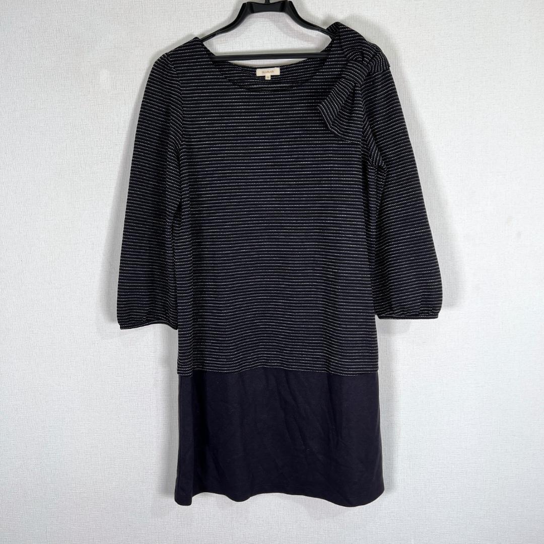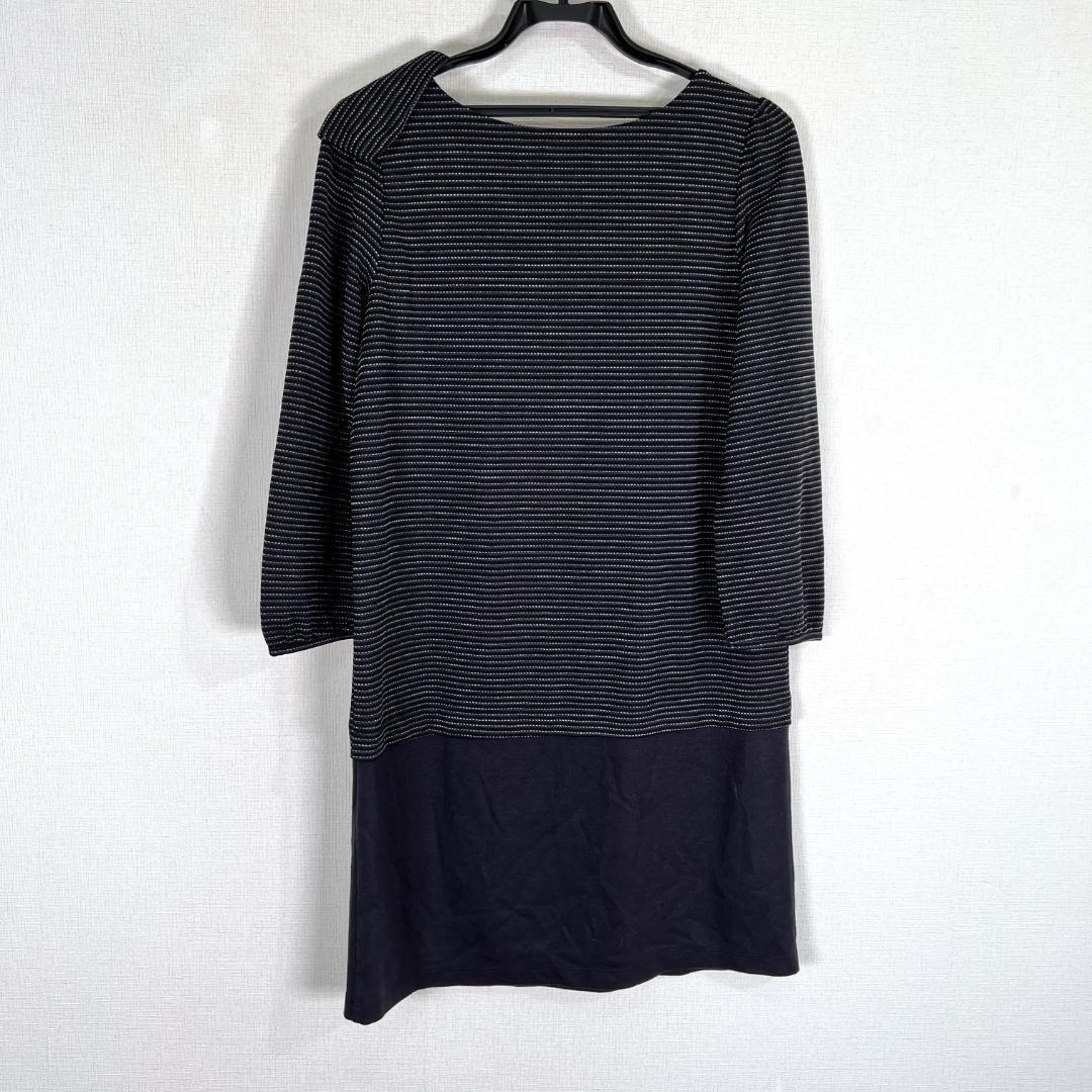 女性用 レディースの黒 ブラック系の七分袖ボーダーワンピース カジュアルワンピース です。中古品ですが目立つ傷や汚れもなく、まだまだ使えます。古着 ハッシュアッシュ 株式会社ワールド リボン/切り替えデザイン