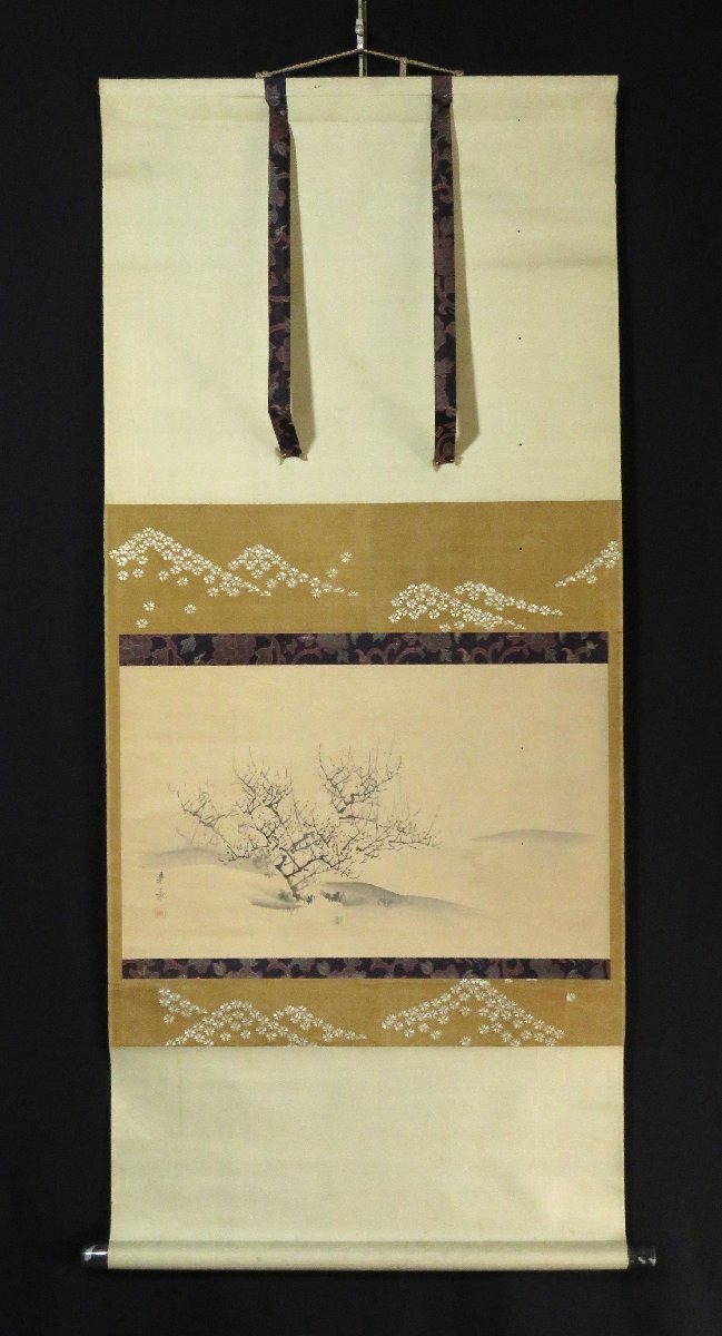商品説明 | ◆◇掛軸 中島来章(NAKAJIMA-Raisho 滋賀-京都 1796-1871) 野梅図 所蔵:東京国立博物館 滋賀県近代美術館等◇◆正月 早春 春 冬 JY1929 ≪ サイズ ≫(若干の誤差はご了承ください) 表装サイズ: 縦 127.5 × 横 55.5 cm 本紙サイズ: 縦 31.5 × 横 52.5 cm 本紙材質: 紙本 軸先材質: 石 表装 : 大和表具 茶掛表装(草) 裂地 : 一文字・風袋 - 時代 唐花銀襴 中廻 - 刺繍 遠山桜裂 ≪ 状態 ≫ 薄いシミ、ヤケがありますが概ね美品です ≪ 箱行≫ 木箱 |