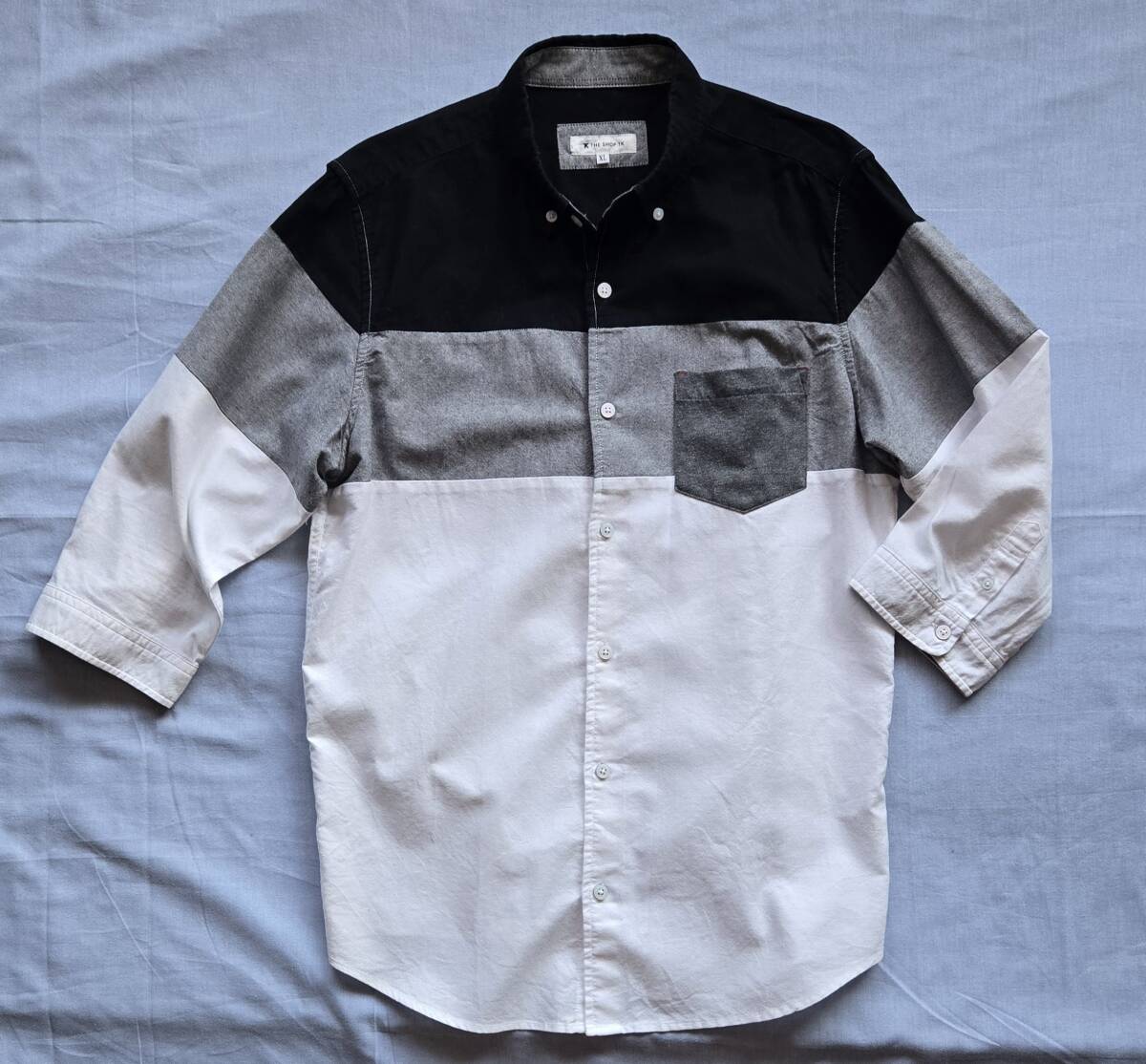 送料無料 TK THE SHOP TK タケオキクチ ボーダー オックスフォード ネル 切り替え シャツ パッチワーク ワークシャツ TAKEO KIKUCHI