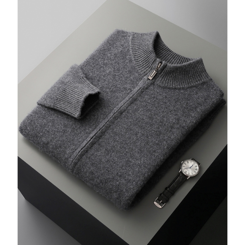 ウールニット カーディガン メンズ ジップアップ ニットカーディガン カジュアル ウール100% 羽織 秋冬 ダークグレー/A1357-XL