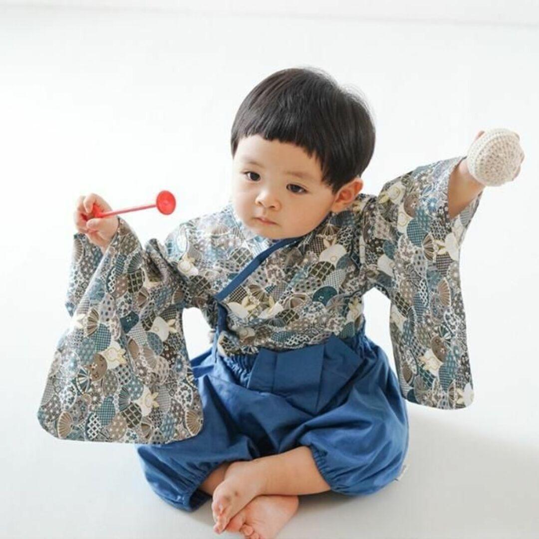 新品未使用 70cmうさぎ柄〔#BMセパレート袴〕セットアップ 袴ロンパース ベビー 子供 男の子 着物 和服 お食い初め 初節句 こどもの日 端午