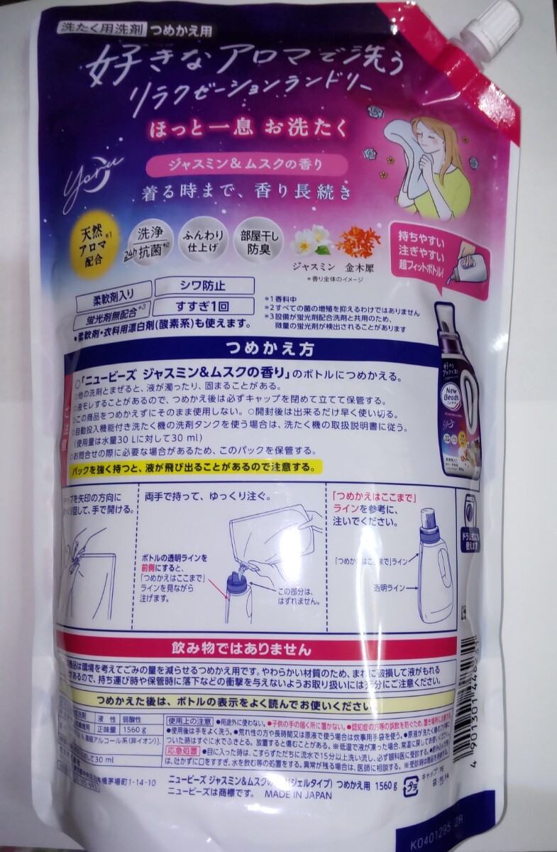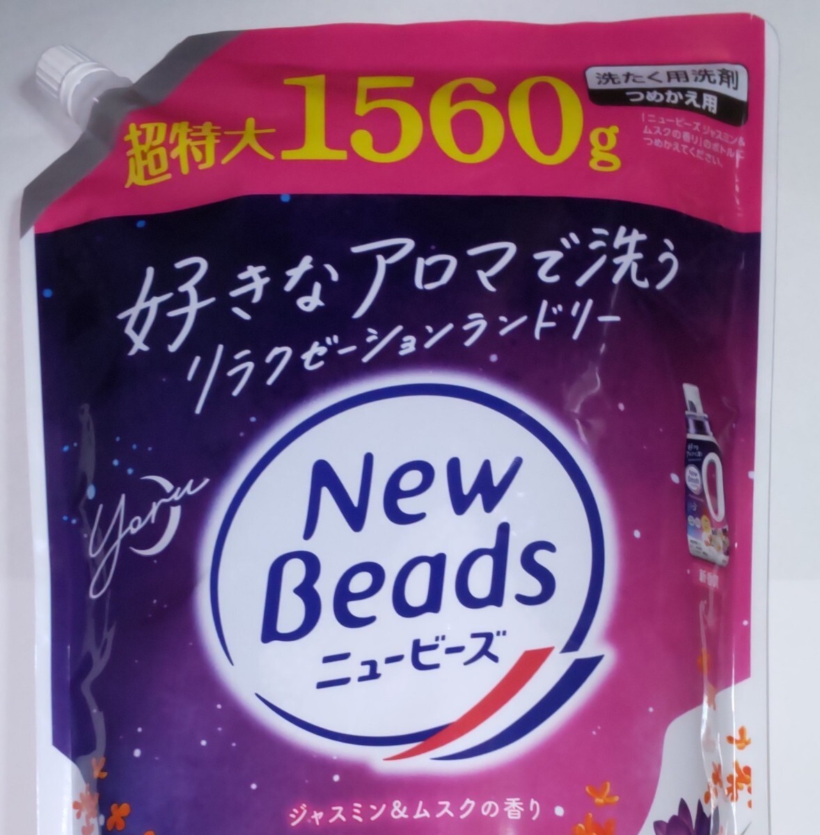 花王 ニュービーズ 洗たく用洗剤 つめかえ用 超特大1560gです。