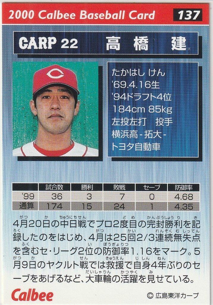 ●2000カルビー 【高橋 健】プレ版:金箔押サインパラレル No.137:広島 R