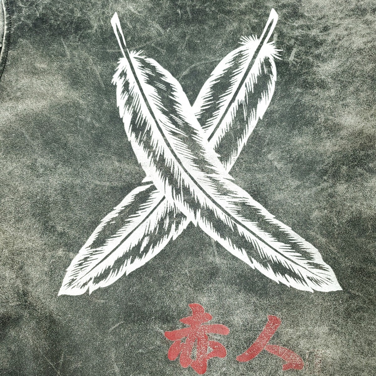 背中のフェザー&赤人と左胸のネイティブアメリカンプリントがインパクト大です!