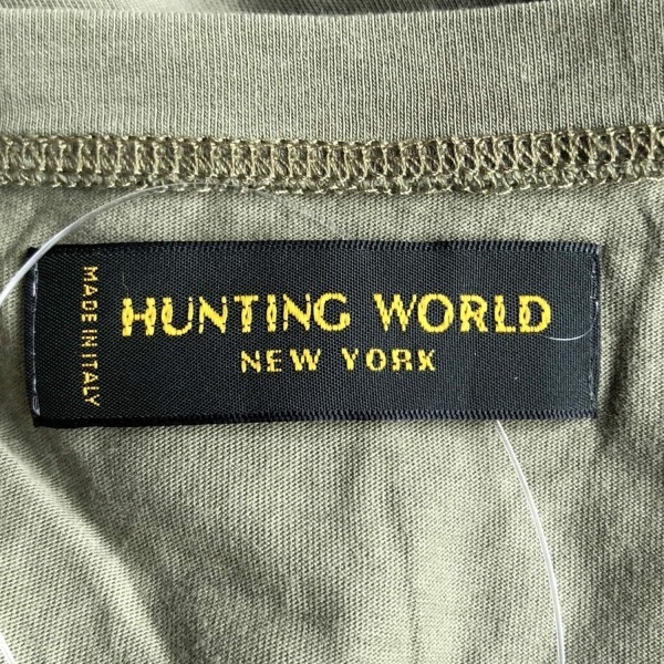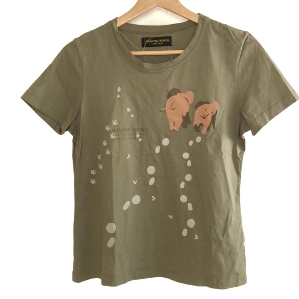 ハンティングワールド HUNTING WORLD 半袖Tシャツ サイズ42 L - カーキ×ライトブラウン×マルチ レディース クルーネック/ゾウ トップス