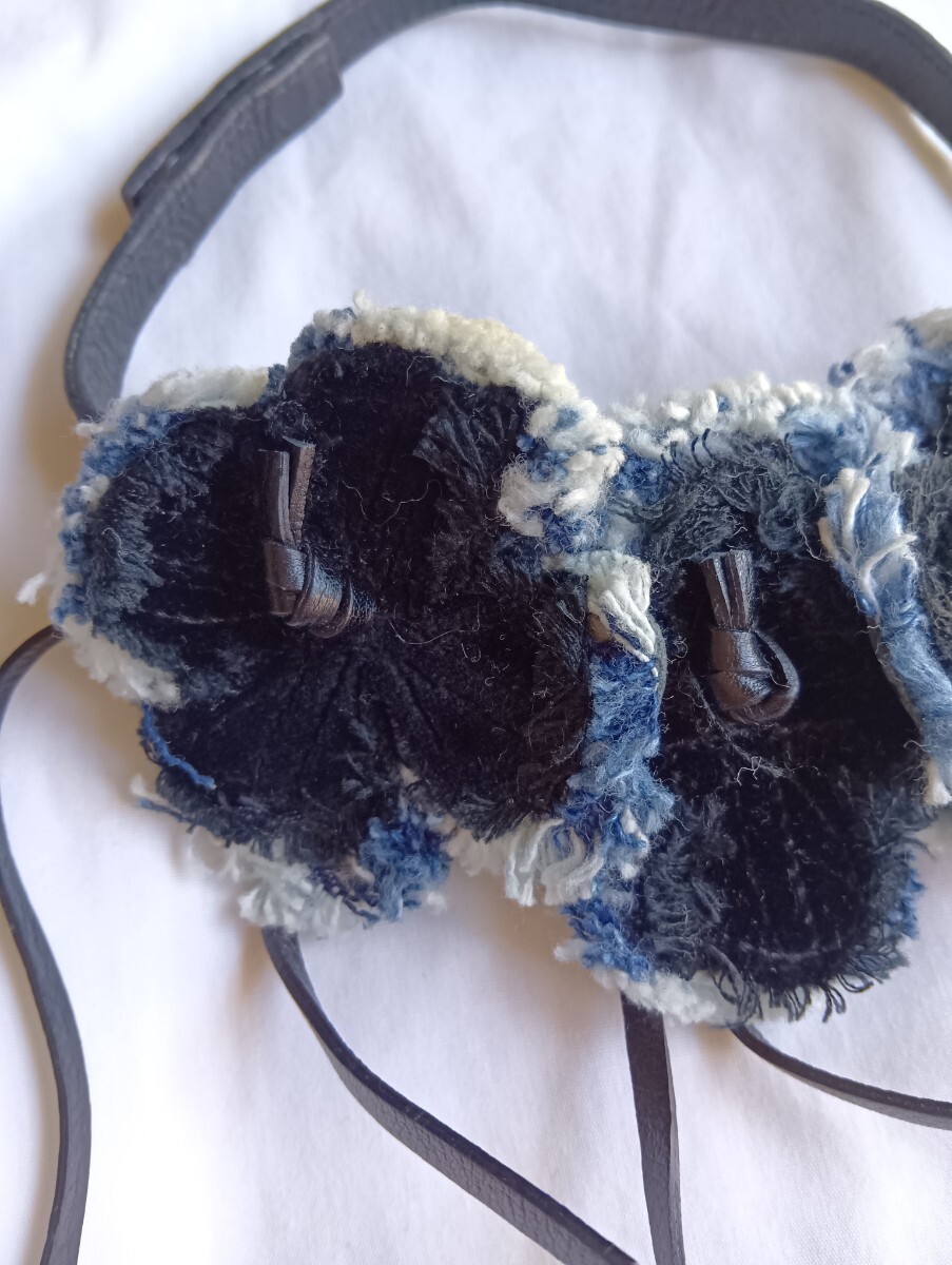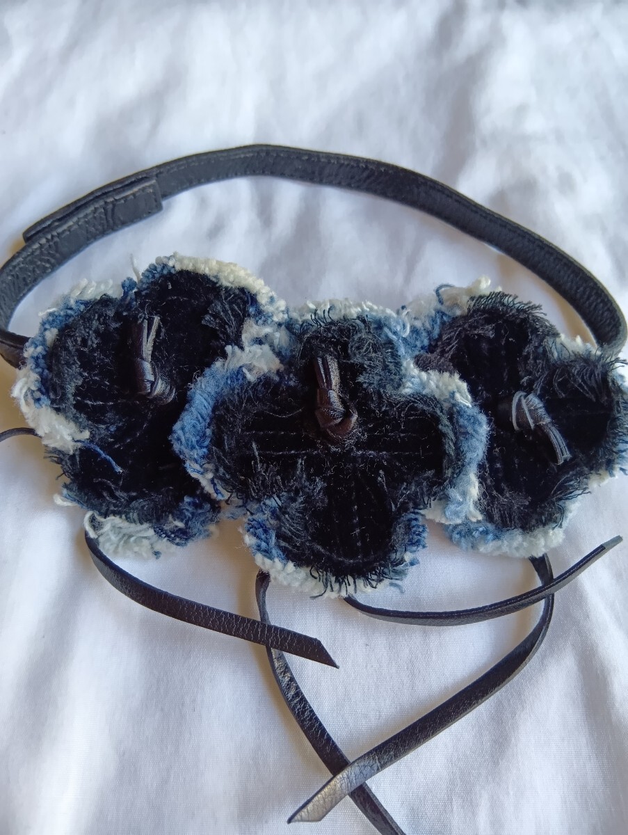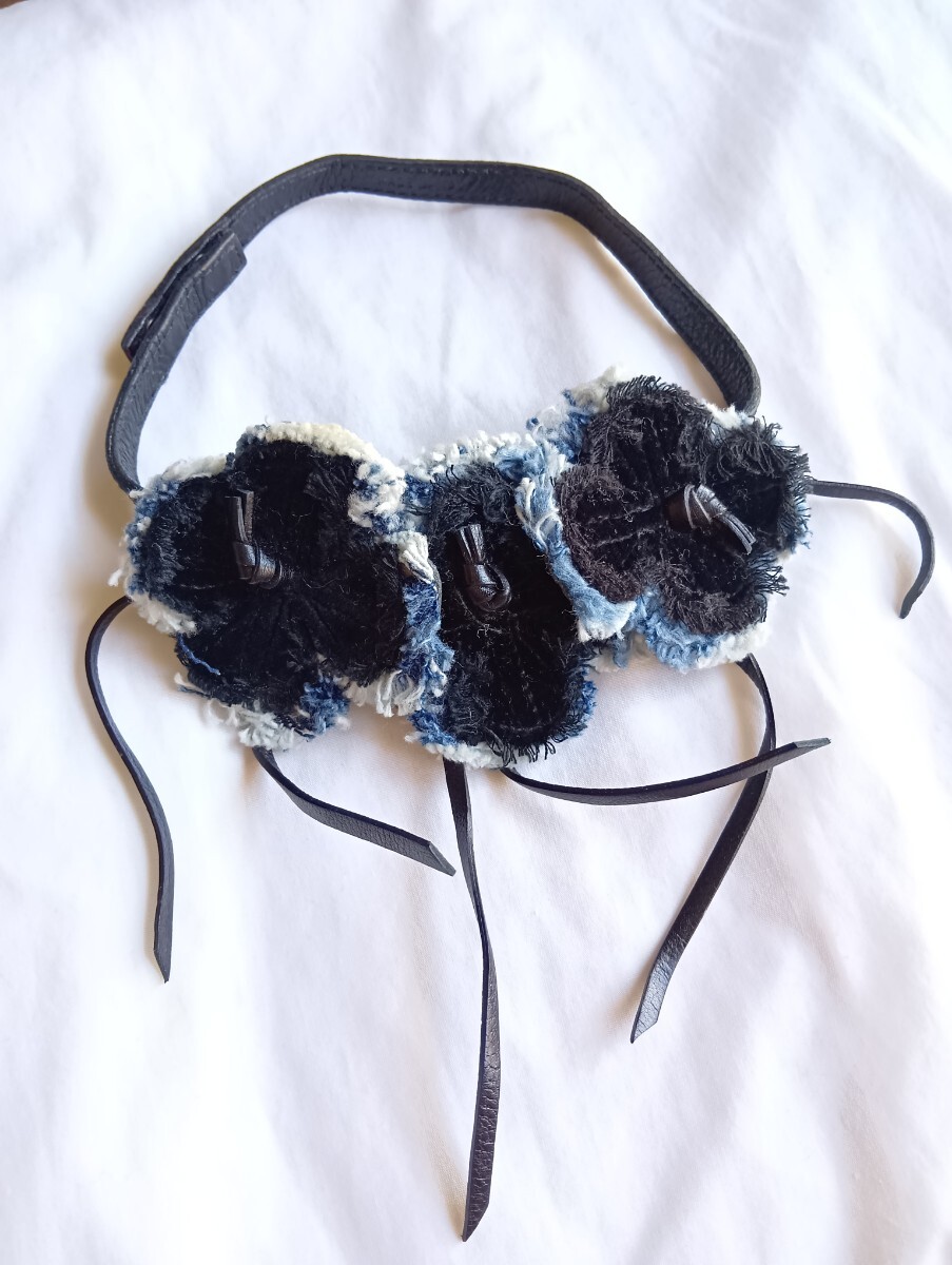 miu miu(ミュウミュウ)のレザーデニムのフラワーチョーカーになります