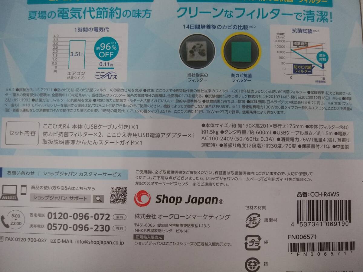 【佐川発送】shop Japan ショップジャパン ここひえR4/冷風扇