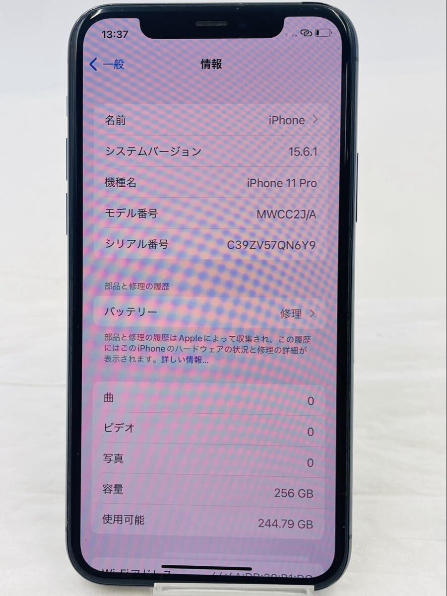 ◇ Apple iPhone 11pro アップル アイフォン 256GB SIMロックあり バッテリー容量75% SoftBank判定◯ 背面割れあり 初期化/通電確認済み