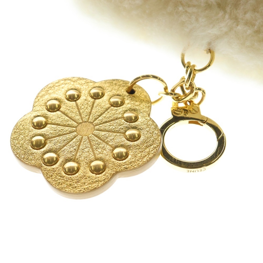 CELINE セリーヌ トリオンフ チャーム 梅モチーフ付き ポンポンチャーム ホワイト シアリング&カーフスキン 49K023GVW.01RC