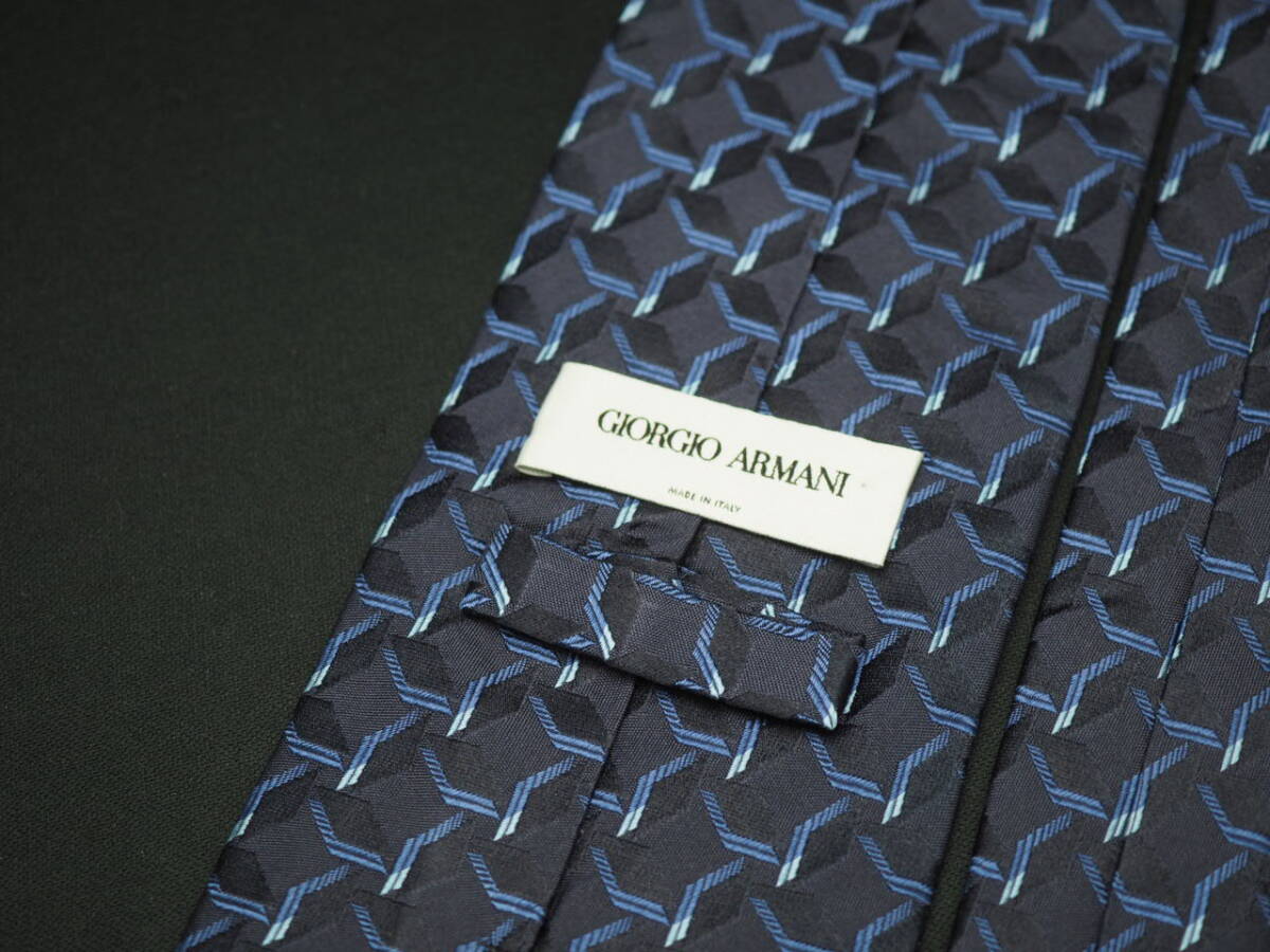 美品【GIORGIO ARMANI ジョルジオアルマーニ】 F2225 ネイビー系 SILK ブランド ネクタイ 古着 良品 転売 仕入