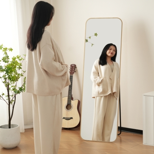 全身鏡 丸角フレーム 姿見鏡 北欧 木目調 スタンドミラー 壁掛けミラー 立てかけ 姿見 鏡 ミラー おしゃれ 飛散防止 160*50CM ナチュラル