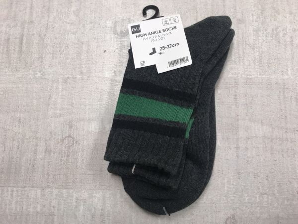 新品タグ付き ジーユー GU 霜降り メランジ ハイアンクルソックス 靴下 メンズ 25-27 グレー 緑です。