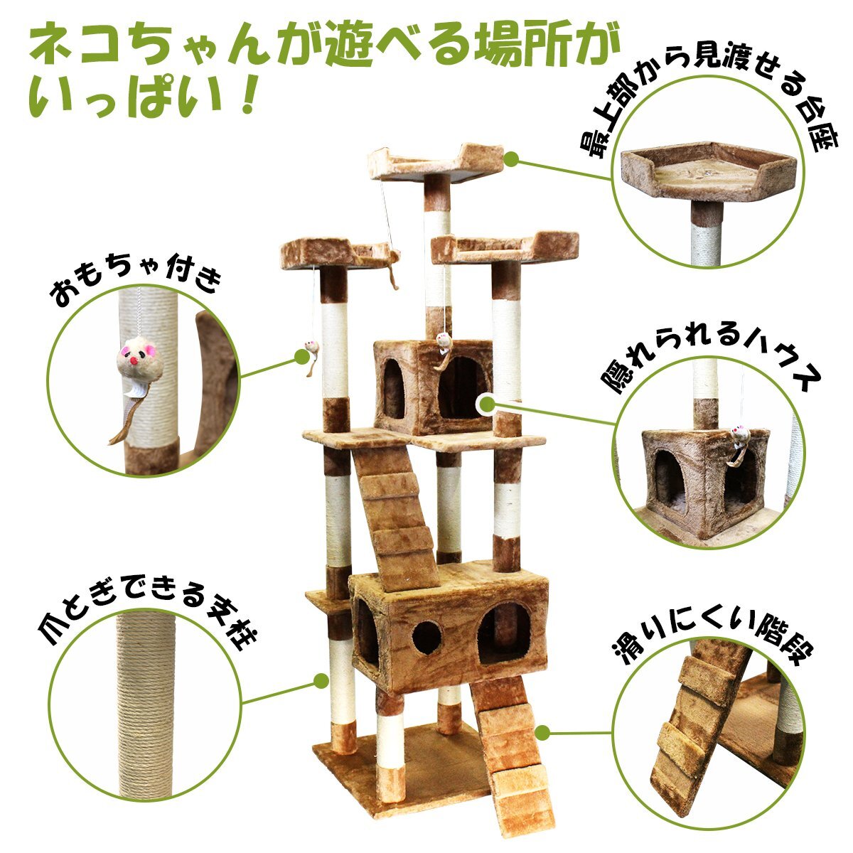 高さ170cm キャット タワー ブラウン ネコ ハウス 据え置き 爪とぎ 遊び場 隠れ家 置き型 猫 家 ビックサイズ