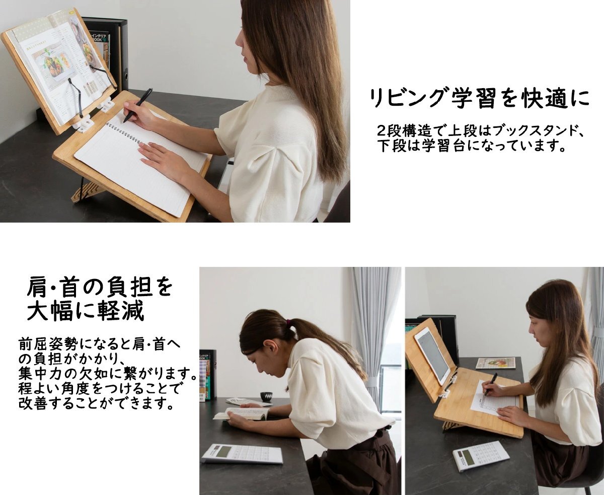 学習台 傾斜 ライティングボード 大人 子供 リビング学習ボード 木製 ノートパソコン/ブックスタンド 書見台読書台 卓上 姿勢矯正 角度調整