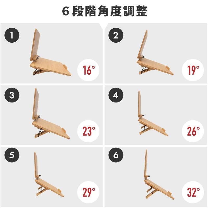 ブックスタンドは無段階角度調整・学習台は10° 35°(5°ずつアップします)の6段階角度調整が可能です。