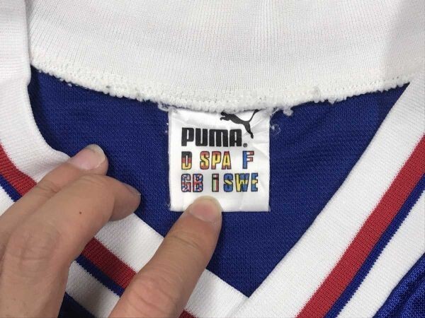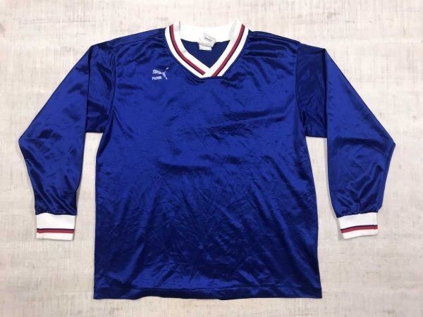 プーマ PUMA オールド レトロ スポーツ 90s サッカー 古着 長袖 ユニフォーム ゲーム シャツ メンズ バックプリント有 日本製 L 青 です。