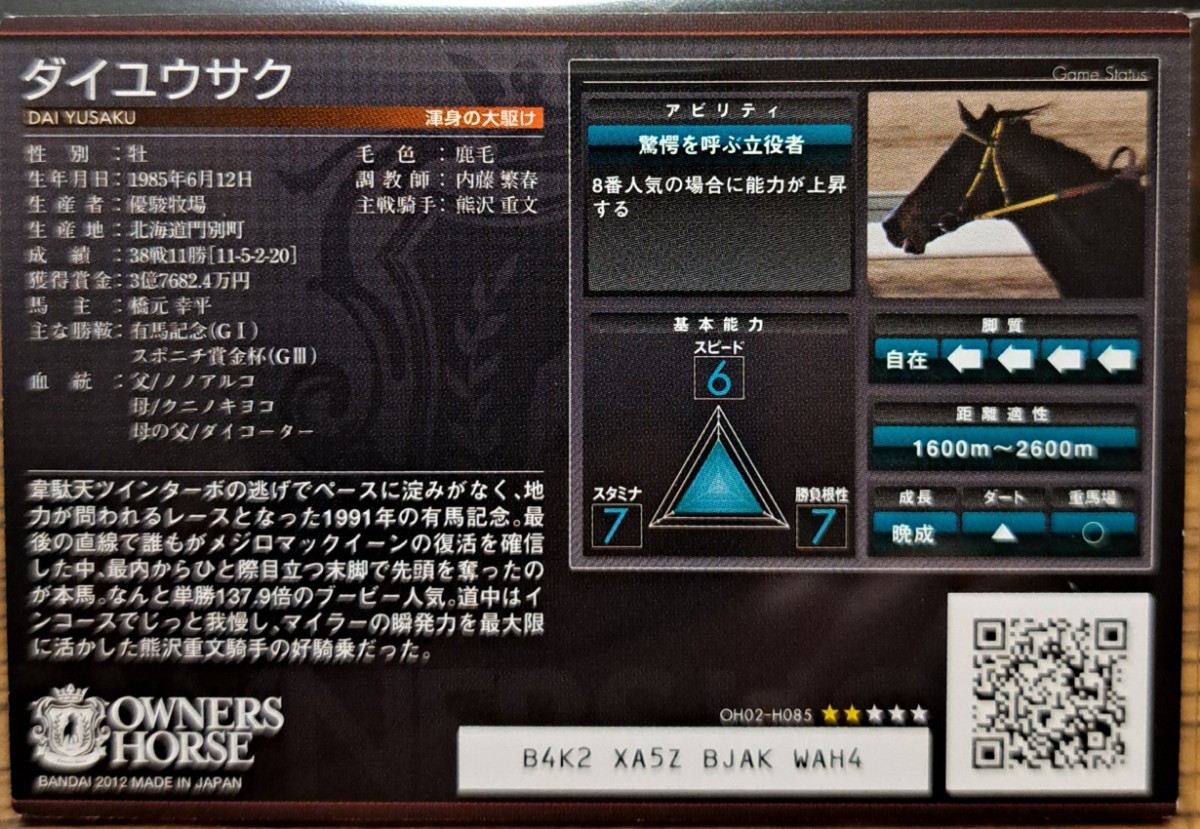 ※オーナーズホースのサービス自体は終了しておりますのでカードをコレクションとして出品します。