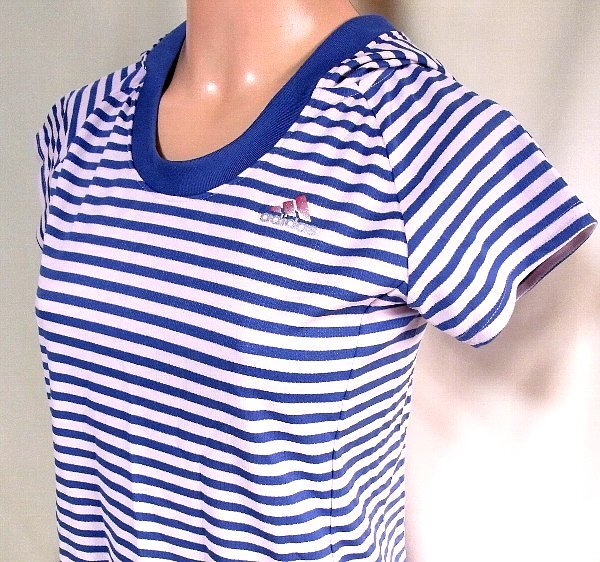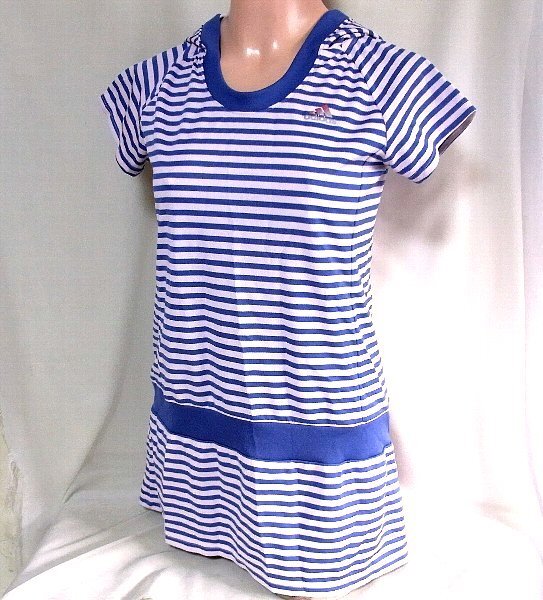 ★☆adidas 紺ピンクボーダー柄パーカー付き半袖テニスワンピーススカート☆★