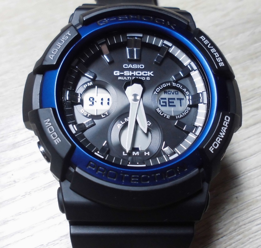 ビッグケースを採用し電波ソーラーを搭載したモデル GAW-100B-1A2JF!!! 無骨な大型のケースに、メタル製のベゼルを組み合わせ、ベーシックに磨きをかけた、カジュアルと上質さを併せ持つタフネスデザインに仕上げました。ブラックを基調としたカラーにアルミベゼルを用い、様々なスタイルに合うスタンダードなデザインになっています。また、独自の樹脂成形による立体的なインデックスには蒸着塗装を施し、メタルベゼルとの組み合わせによりクールな中にも上質感を表現しました。 スタンダードデザインのクオリティを追求し、高い実用性を誇る電波ソーラーを搭載したモデルです。 中古ですが状態は良いです。写真の時計、使用説明書、ボックスの出品です。2枚目の写真を見てもらうとわかると思いますが、電波受信OKです。写真撮影時は、ライトが点灯し動作中です。中古なのでコキズはありますが良い状態です。 |