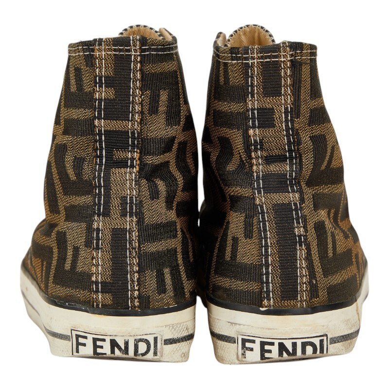 フェンディ ズッカ スニーカー ハイカットスニーカー サイズ:34 ベージュ ブラウン キャンバス レディース FENDI 【中古】