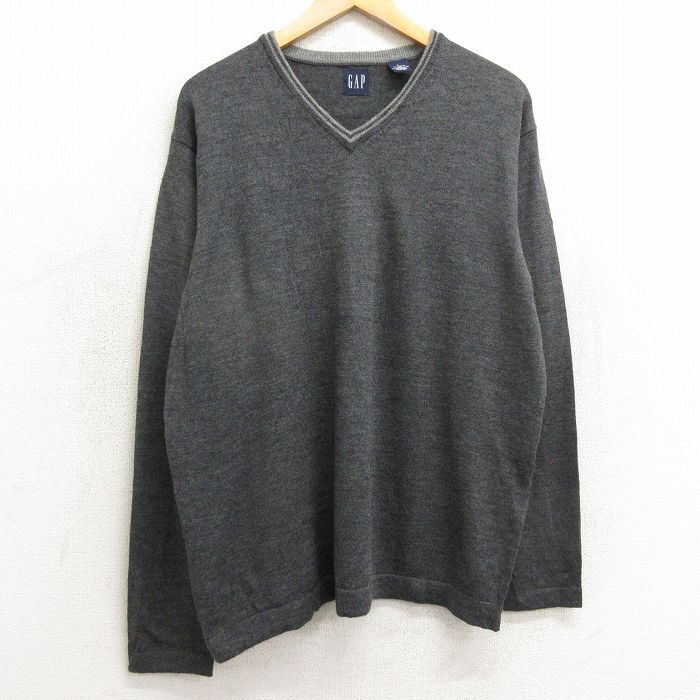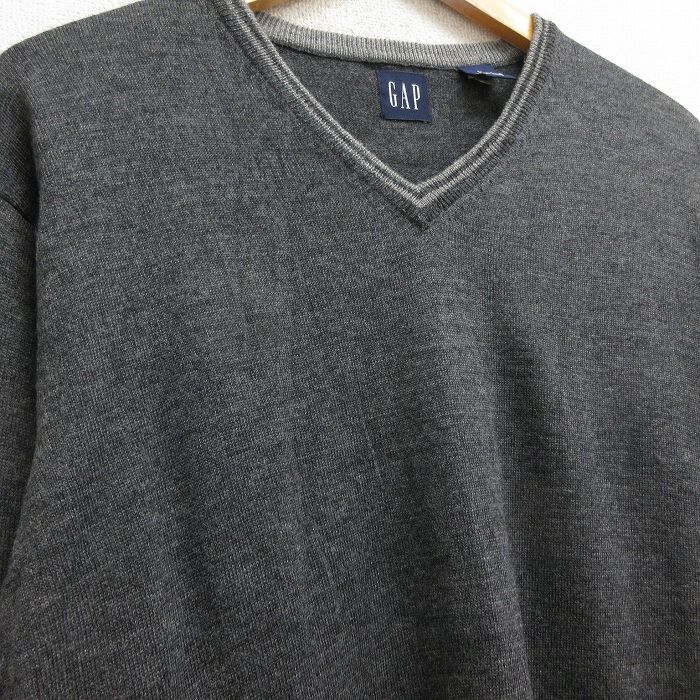 【商品名】 L★古着 ギャップ GAP 長袖 セーター メンズ 00年代 00s 無地 メリノウール Vネック 濃グレー
