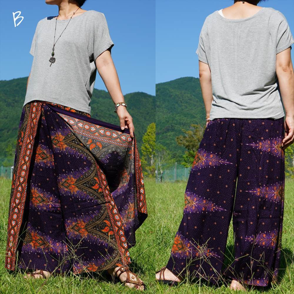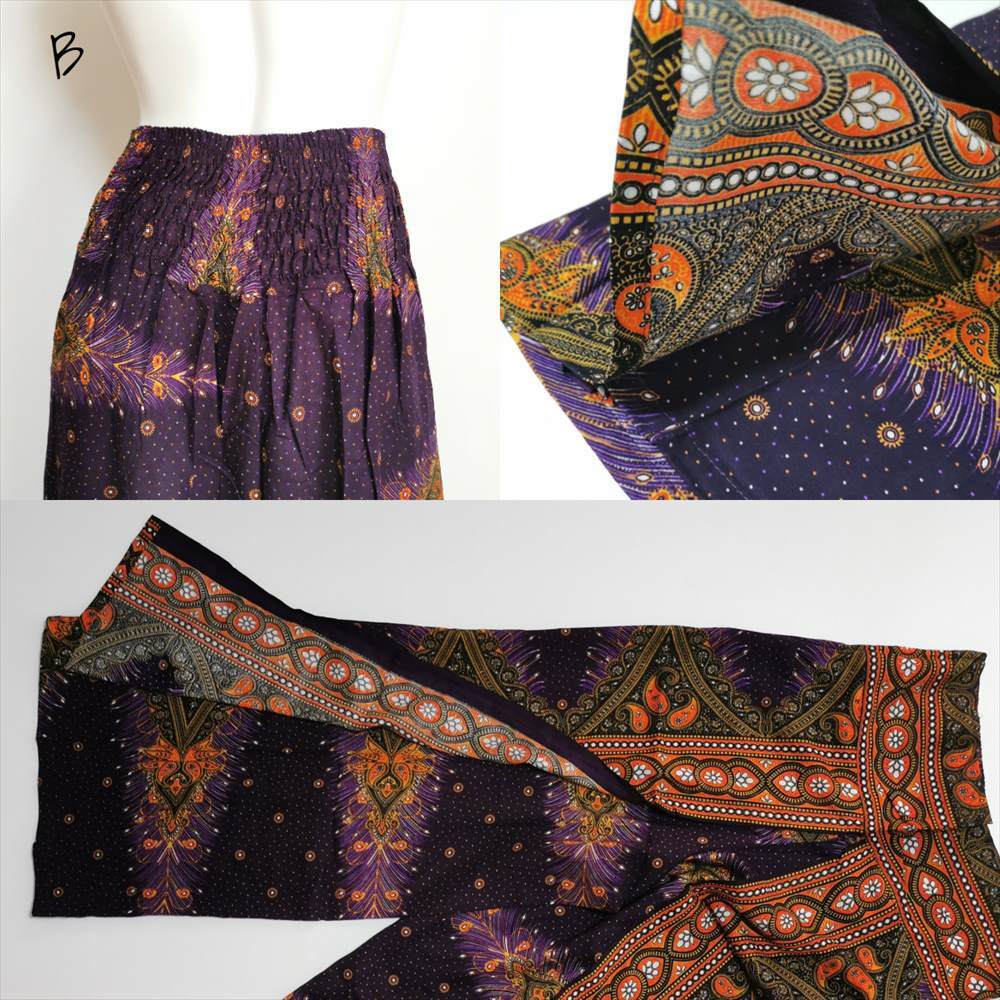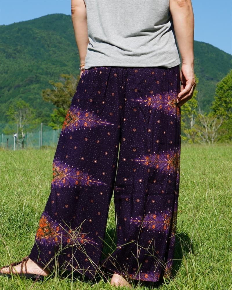 エスニック ラップパンツ ピーコック★送料込新品B★アジアン サルエル ワイドパンツ ヨガ ユニセックス ルームウエア