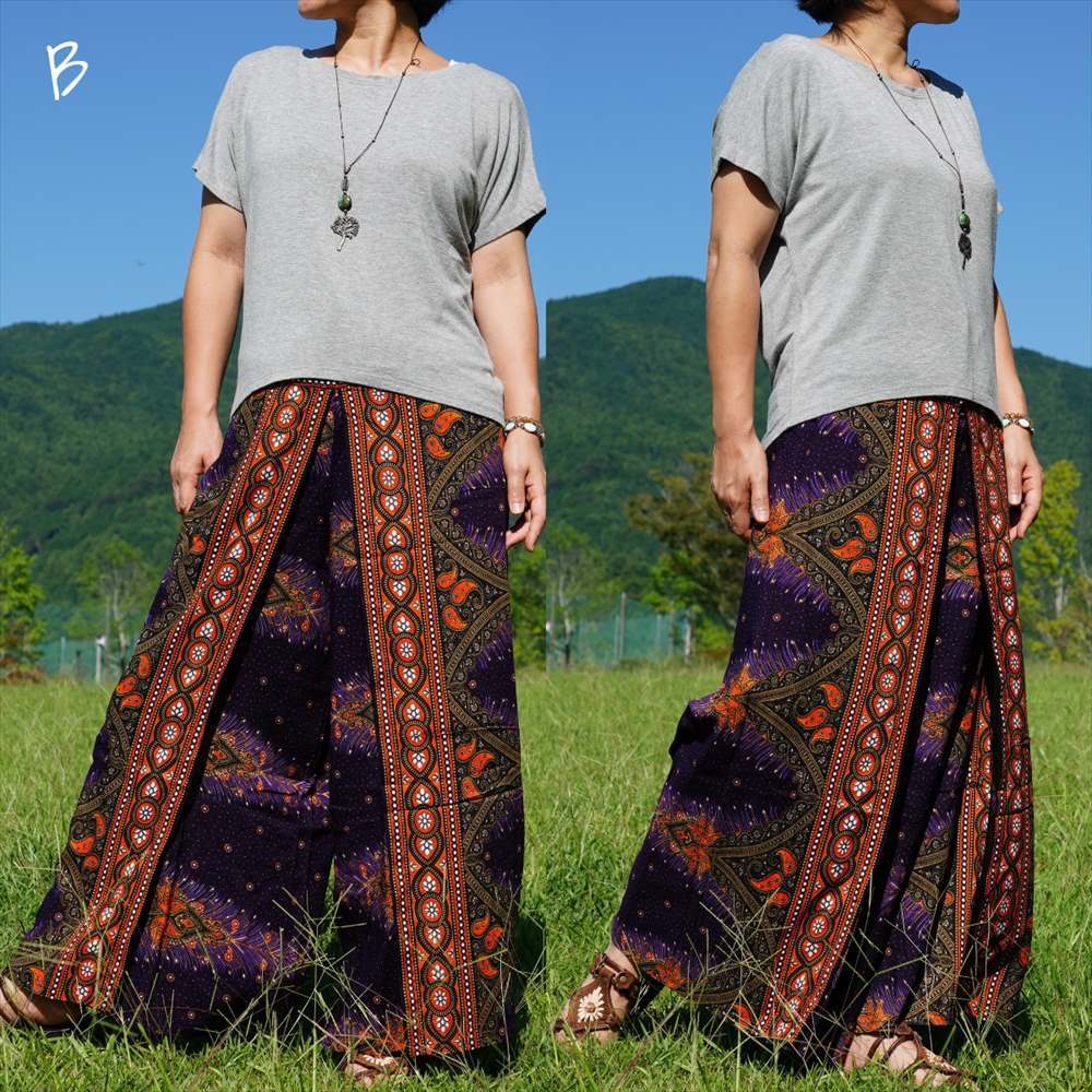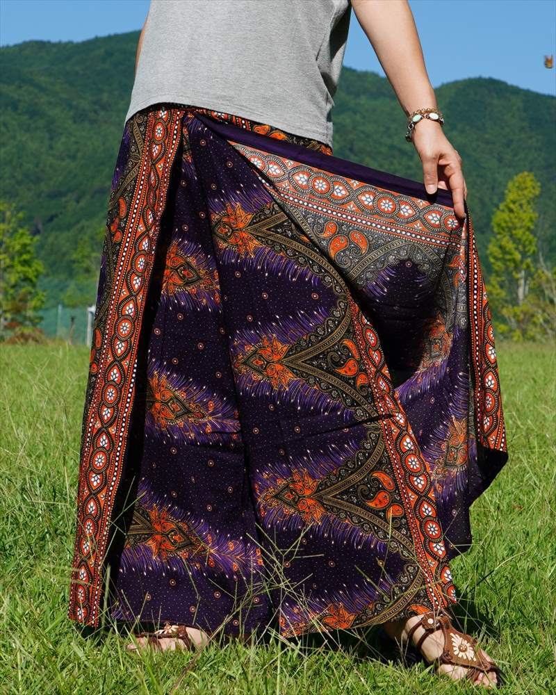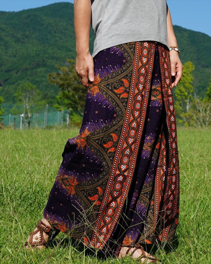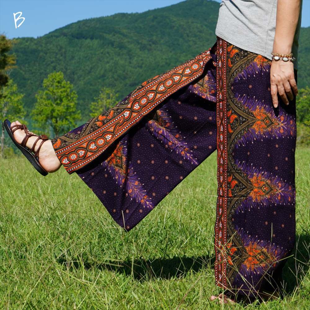 エスニック ラップパンツ ピーコック★送料込新品B★アジアン サルエル ワイドパンツ ヨガ ユニセックス ルームウエア